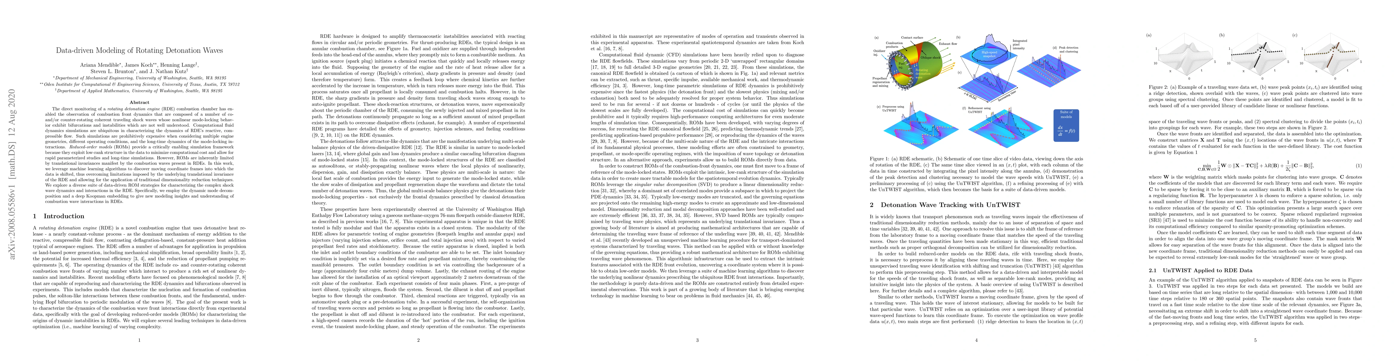 This research investigates the use of data-driven reduced-order models (ROMs) to understand the complex dynamics of rotating detonation waves in combustion chambers. By employing machine learning to account for translational invariance, it explores dynamic mode decomposition and deep Koopman embeddings for efficient simulation and analysis of shock wave interactions.