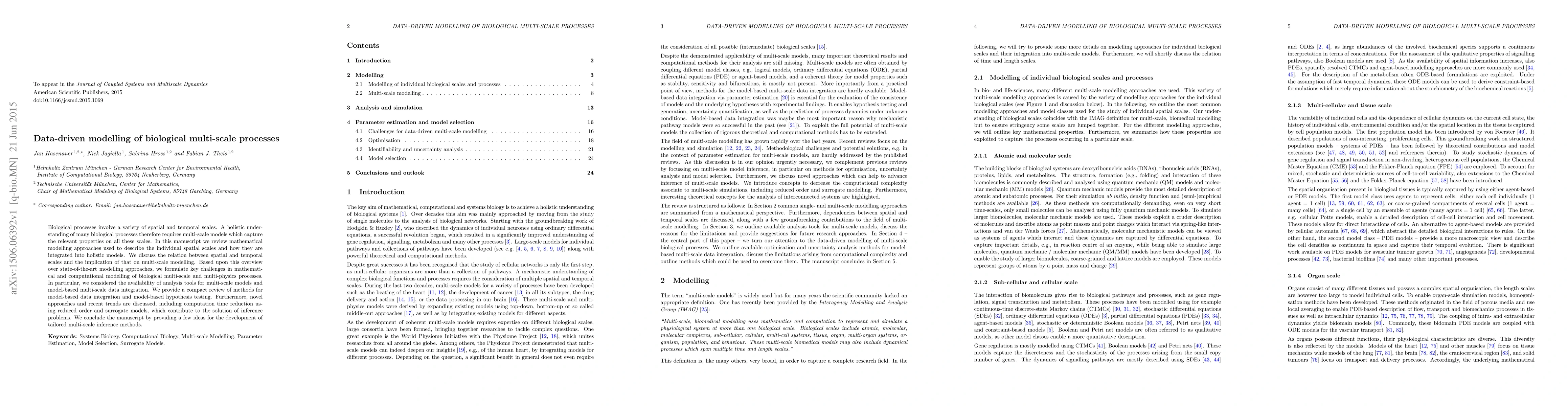 This paper reviews mathematical modelling techniques for multi-scale biological processes, discussing integration methods and challenges in computational modelling. It highlights recent trends like reduced order models and proposes future directions for tailored multi-scale inference methods.