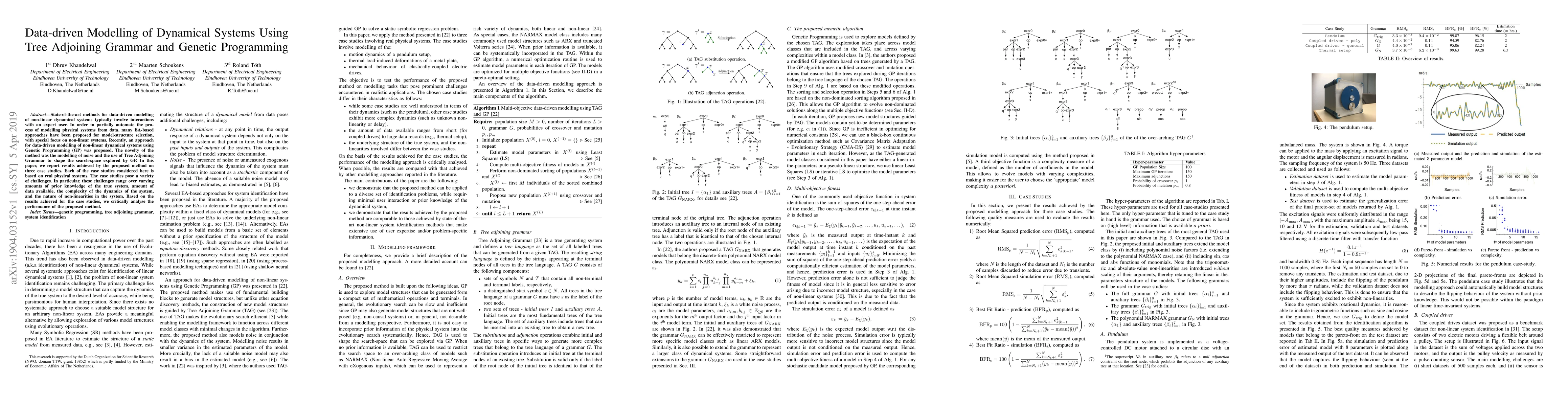 This paper proposes a novel data-driven modelling method for non-linear dynamical systems using Genetic Programming and Tree Adjoining Grammar, demonstrating its effectiveness through three real-world case studies and critically analyzing its performance across various challenges.