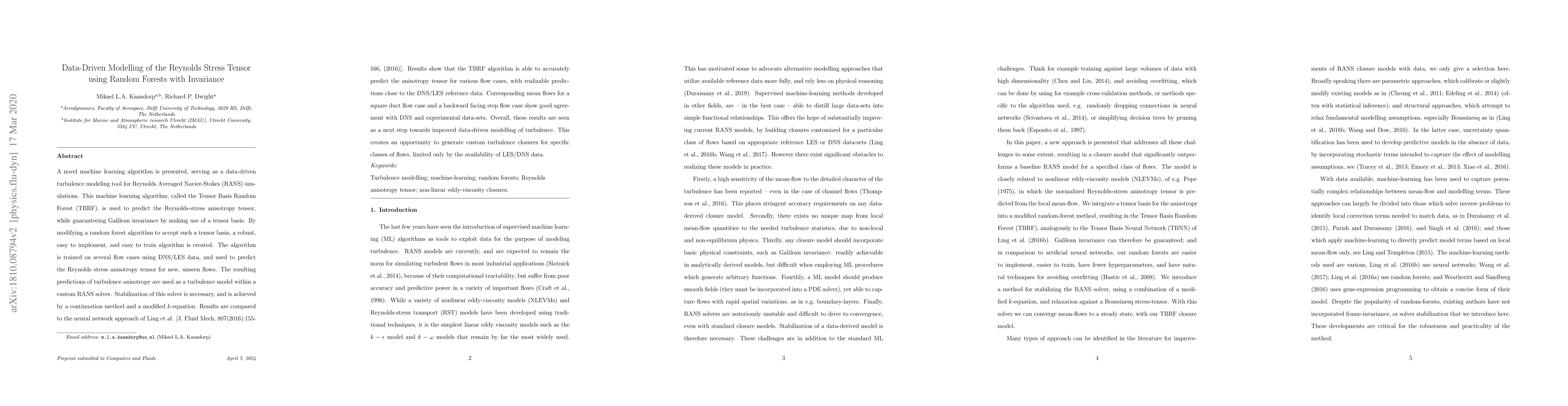 This paper introduces the Tensor Basis Random Forest (TBRF) algorithm, a machine learning approach for predicting the Reynolds-stress anisotropy tensor in turbulence simulations, ensuring Galilean invariance. The TBRF algorithm is trained on DNS/LES data and shows accurate predictions of turbulence anisotropy compared to neural network methods, demonstrating potential for custom turbulence modelling in specific flow cases.