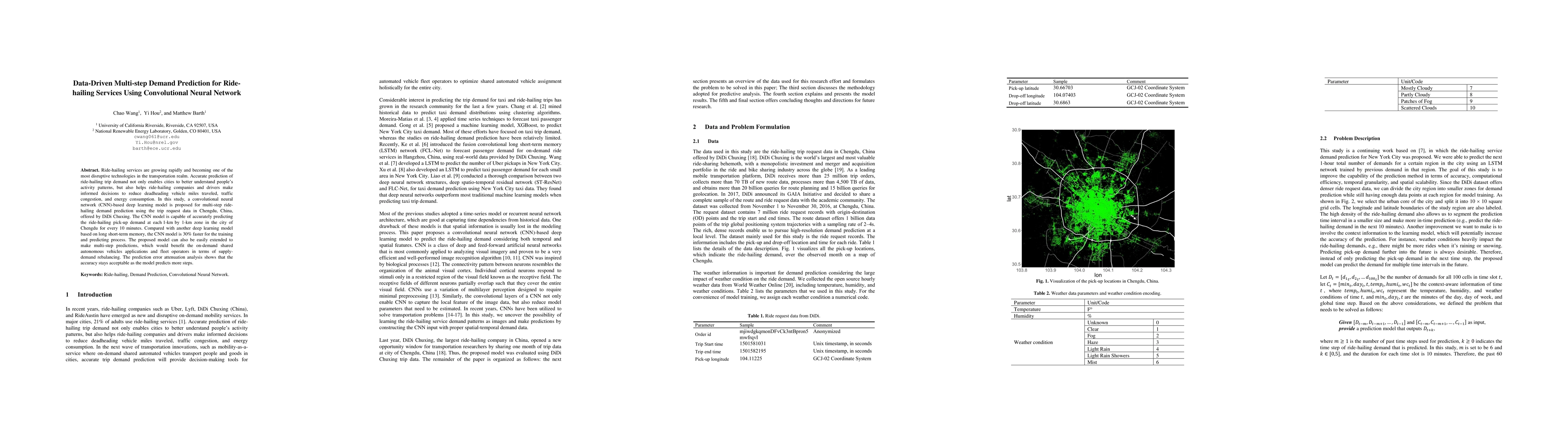 This paper proposes a convolutional neural network (CNN) model for multi-step demand prediction of ride-hailing services in Chengdu, China, achieving 30% faster training and prediction compared to LSTM models, while maintaining accurate predictions over multiple time steps.