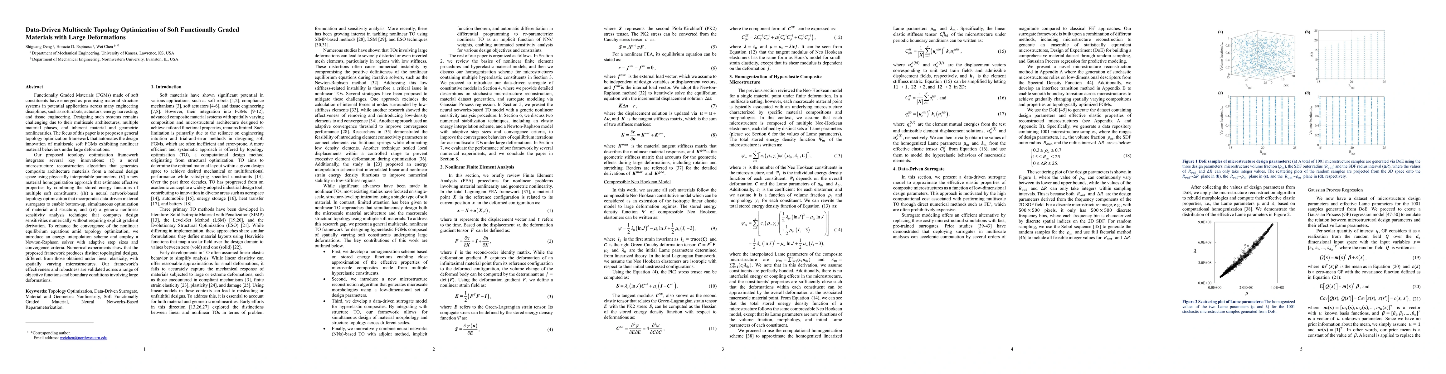 Functionally Graded Materials (FGMs) made of soft constituents have emerged as promising material-structure systems in potential applications across many engineering disciplines, such as soft robots, actuators, energy harvesting, and tissue engineering. Designing such systems remains challenging due to their multiscale architectures, multiple material phases, and inherent material and geometric nonlinearities. The focus of this paper is to propose a general topology optimization framework that automates the design innovation of multiscale soft FGMs exhibiting nonlinear material behaviors under large deformations. Our proposed topology optimization framework integrates several key innovations: (1) a novel microstructure reconstruction algorithm that generates composite architecture materials from a reduced design space using physically interpretable parameters; (2) a new material homogenization approach that estimates effective properties by combining the stored energy functions of multiple soft constituents; (3) a neural network-based topology optimization that incorporates data-driven material surrogates to enable bottom-up, simultaneous optimization of material and structure; and (4) a generic nonlinear sensitivity analysis technique that computes design sensitivities numerically without requiring explicit gradient derivation. To enhance the convergence of the nonlinear equilibrium equations amid topology optimization, we introduce an energy interpolation scheme and employ a Newton-Raphson solver with adaptive step sizes and convergence criteria. Numerical experiments show that the proposed framework produces distinct topological designs, different from those obtained under linear elasticity, with spatially varying microstructures.