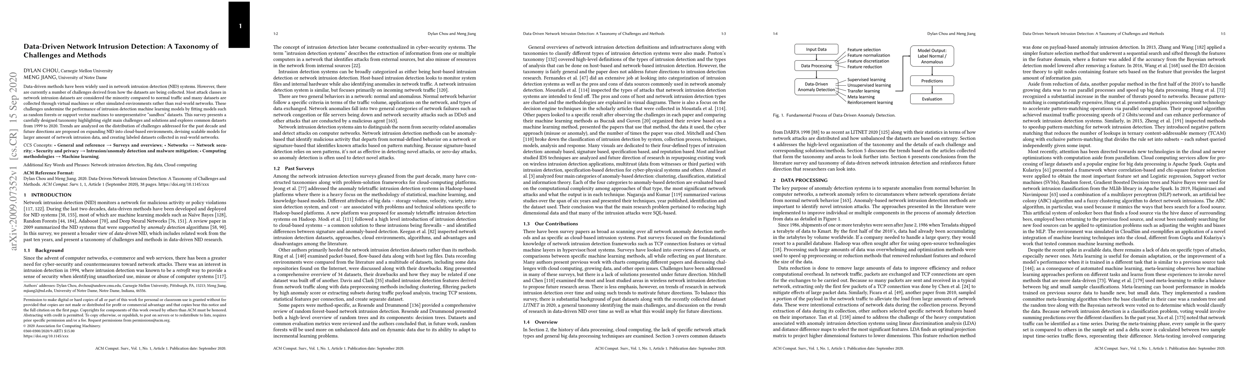 This paper surveys data-driven network intrusion detection methods, highlighting eight main challenges such as imbalanced datasets and simulated environments. It proposes solutions and analyzes trends, suggesting future directions for real-world data collection and scalable models.