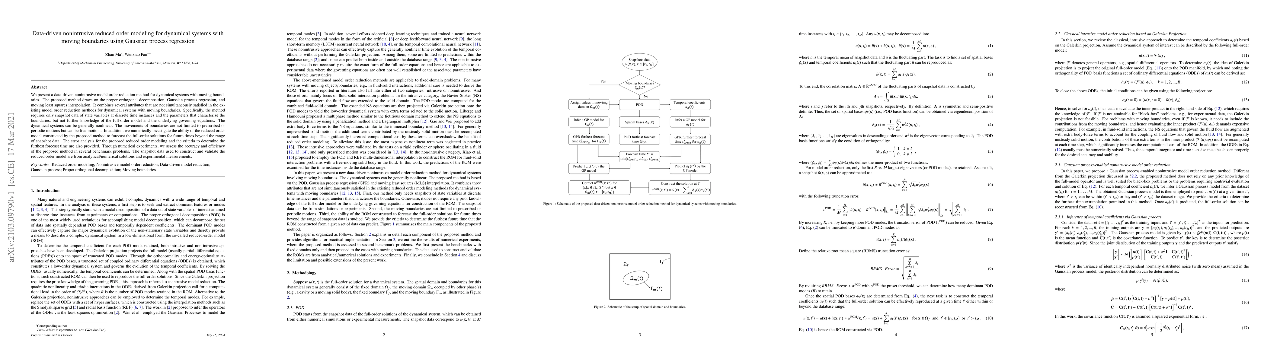 This paper introduces a nonintrusive reduced order modeling technique for dynamical systems with moving boundaries, employing Gaussian process regression and proper orthogonal decomposition. The method forecasts future states without requiring full-order model knowledge, demonstrating accuracy and efficiency through numerical experiments and real-world data.