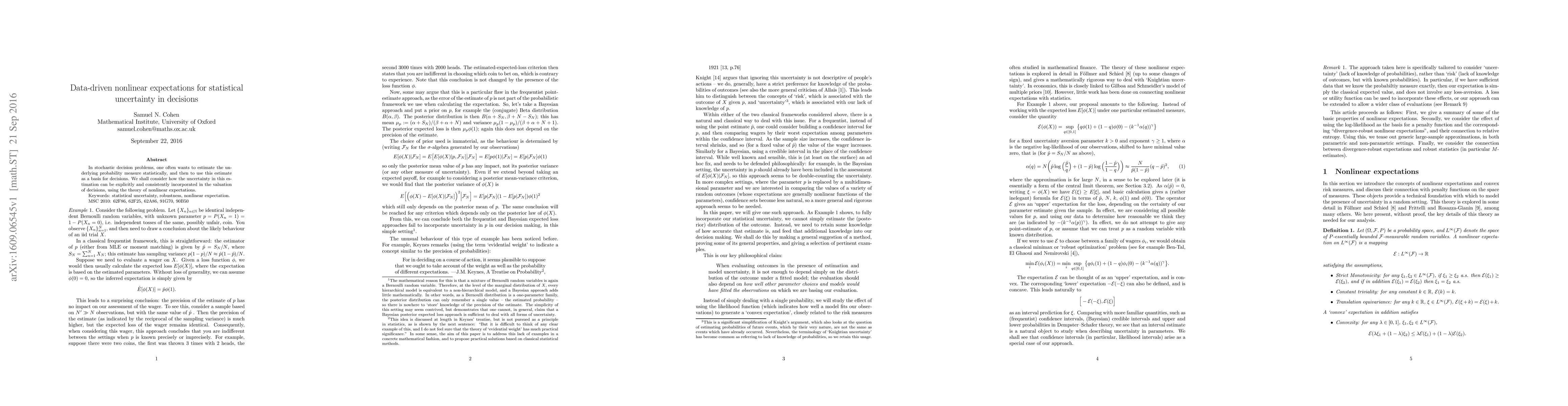 In stochastic decision problems, one often wants to estimate the underlying probability measure statistically, and then to use this estimate as a basis for decisions. We shall consider how the uncertainty in this estimation can be explicitly and consistently incorporated in the valuation of decisions, using the theory of nonlinear expectations.