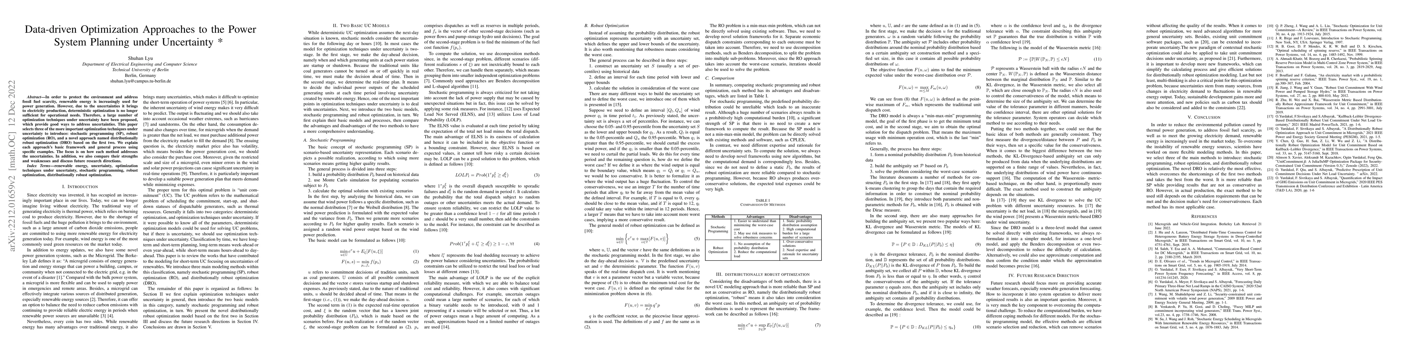 This paper explores optimization techniques for power system planning under uncertainty, focusing on stochastic programming, robust optimization, and distributionally robust optimization. It examines how each method addresses uncertainties in renewable energy integration and compares their strengths and weaknesses to guide future research.