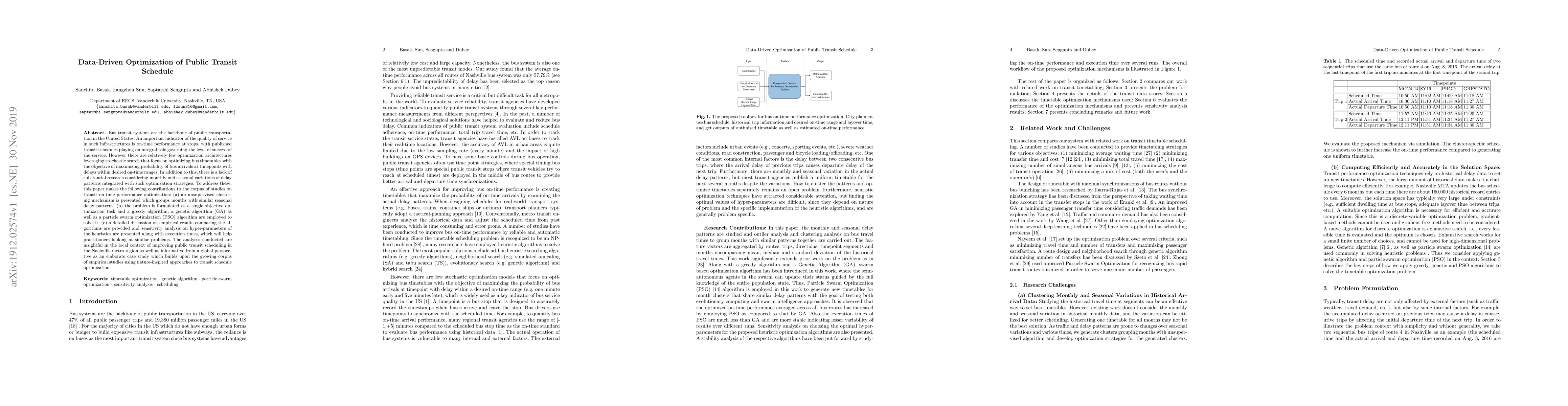 This research paper optimizes public transit schedules using machine learning algorithms to minimize delays and maximize on-time performance, with a focus on seasonal variations.
