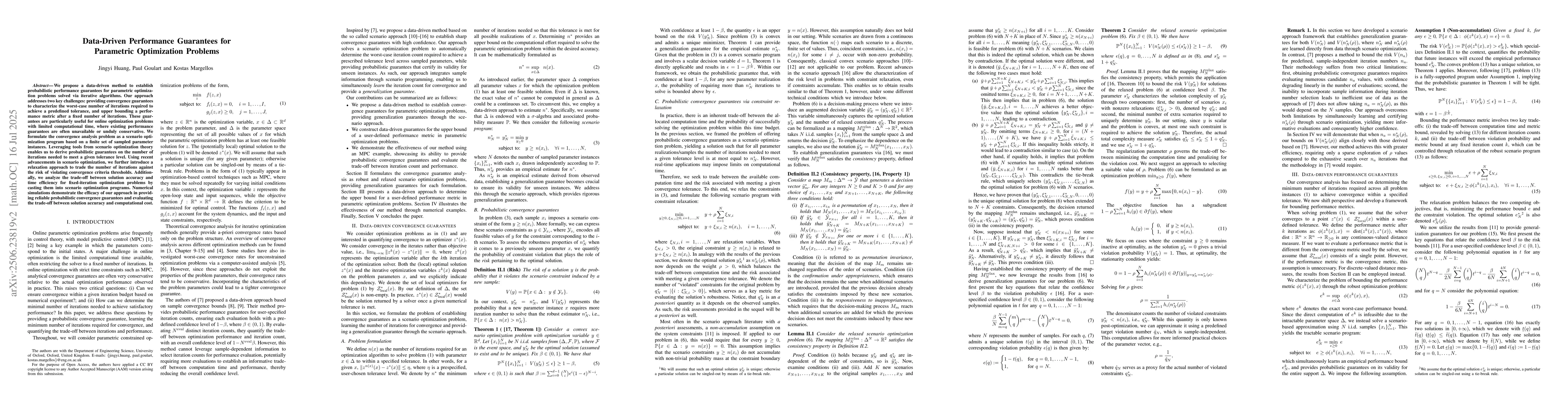 We propose a data-driven method to establish probabilistic performance guarantees for parametric optimization problems solved via iterative algorithms. Our approach addresses two key challenges: providing convergence guarantees to characterize the worst-case number of iterations required to achieve a predefined tolerance, and upper bounding a performance metric after a fixed number of iterations. These guarantees are particularly useful for online optimization problems with limited computational time, where existing performance guarantees are often unavailable or unduly conservative. We formulate the convergence analysis problem as a scenario optimization program based on a finite set of sampled parameter instances. Leveraging tools from scenario optimization theory enables us to derive probabilistic guarantees on the number of iterations needed to meet a given tolerance level. Using recent advancements in scenario optimization, we further introduce a relaxation approach to trade the number of iterations against the risk of violating convergence criteria thresholds. Additionally, we analyze the trade-off between solution accuracy and time efficiency for fixed-iteration optimization problems by casting them into scenario optimization programs. Numerical simulations demonstrate the efficacy of our approach in providing reliable probabilistic convergence guarantees and evaluating the trade-off between solution accuracy and computational cost.