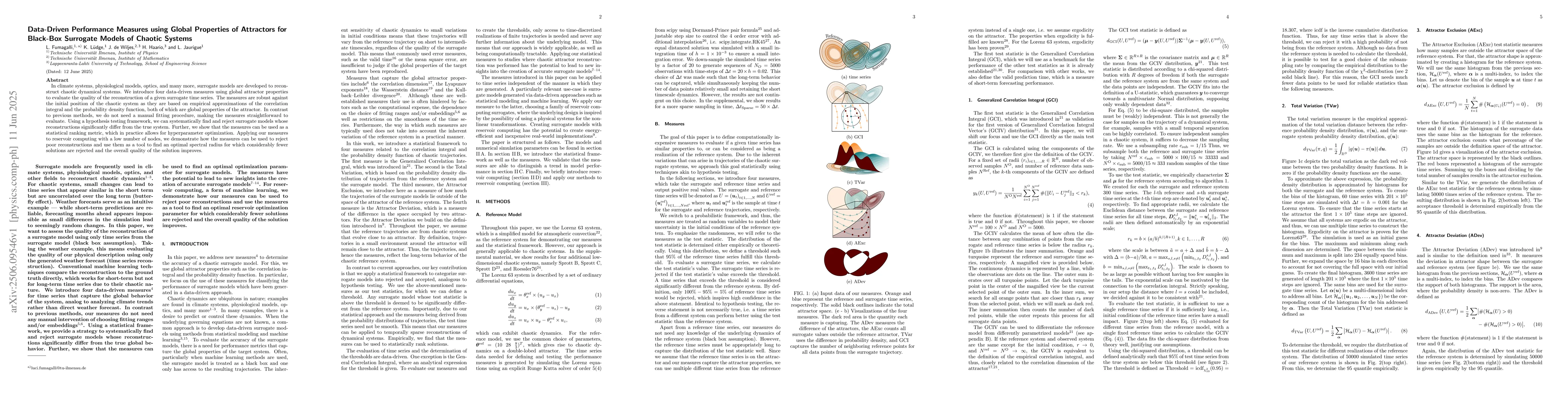 Researchers develop four data-driven measures to evaluate the quality of surrogate models for chaotic systems, allowing for automatic rejection of poor reconstructions and optimization of hyperparameters.
