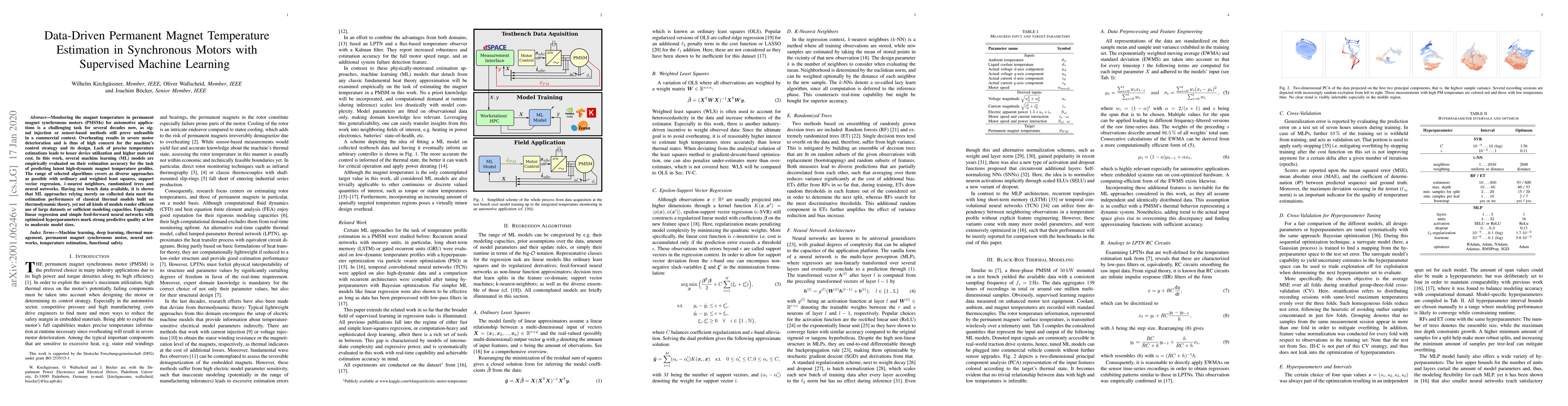 This paper evaluates various machine learning models for estimating the temperature of permanent magnet synchronous motors, demonstrating that optimized linear regression and feed-forward neural networks provide accurate predictions comparable to traditional thermal models, while highlighting the importance of model size and efficiency in large dataset utilization.