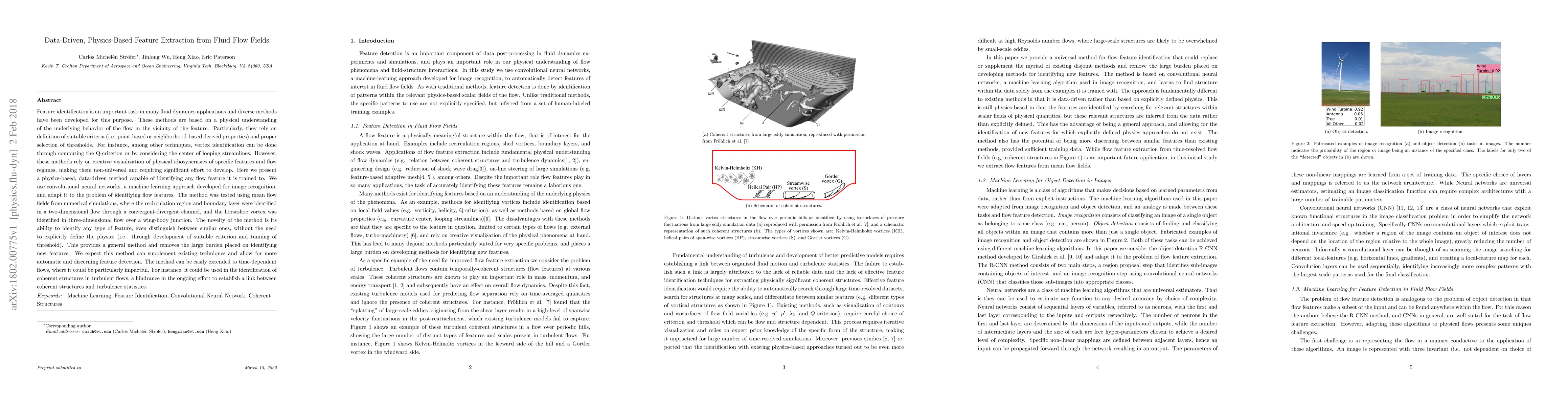 This paper introduces a data-driven, physics-based method using convolutional neural networks to automatically identify fluid flow features without predefined criteria. The method was tested successfully on various flow regimes, demonstrating its potential to generalize and reduce the need for manual feature identification.