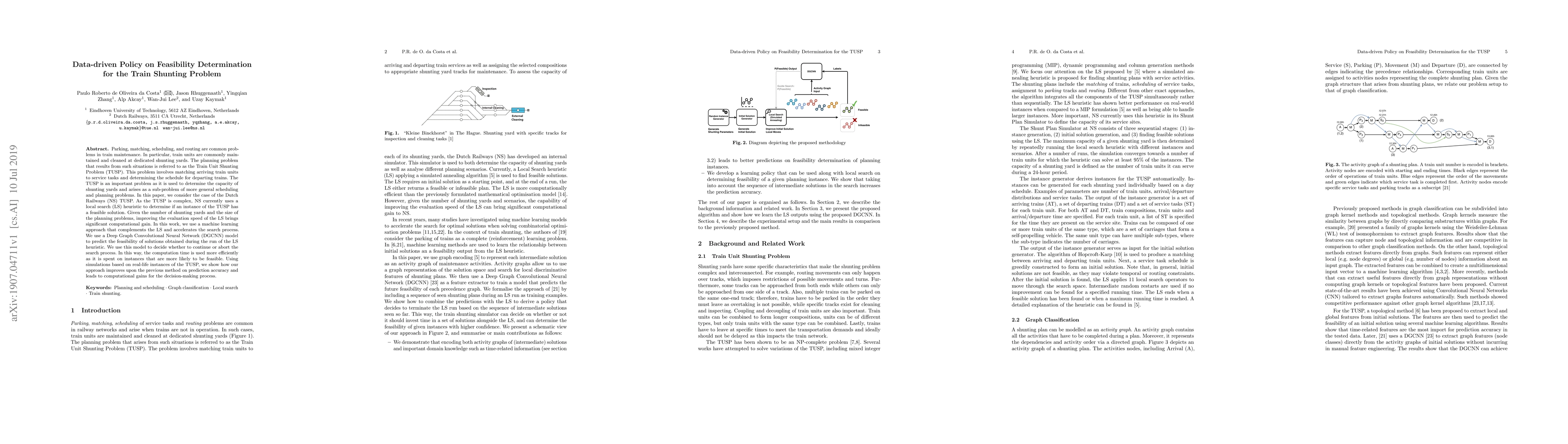 This paper proposes a machine learning-based approach using a Deep Graph Convolutional Neural Network (DGCNN) to predict the feasibility of solutions in the Train Unit Shunting Problem (TUSP), thereby accelerating the local search heuristic used by Dutch Railways (NS). The DGCNN model helps decide whether to continue or abort the search process, improving computational efficiency and prediction accuracy.