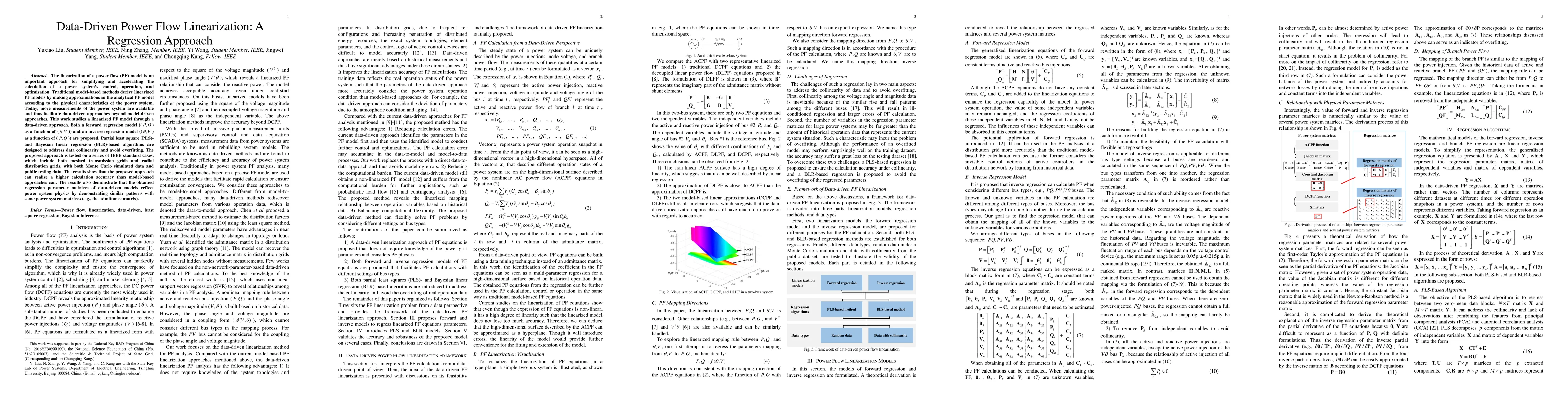 This paper proposes a data-driven regression approach for linearizing power flow models, utilizing forward and inverse regression models to enhance calculation accuracy. The study demonstrates superior performance compared to traditional model-based methods, validated through IEEE standard cases and various datasets.
