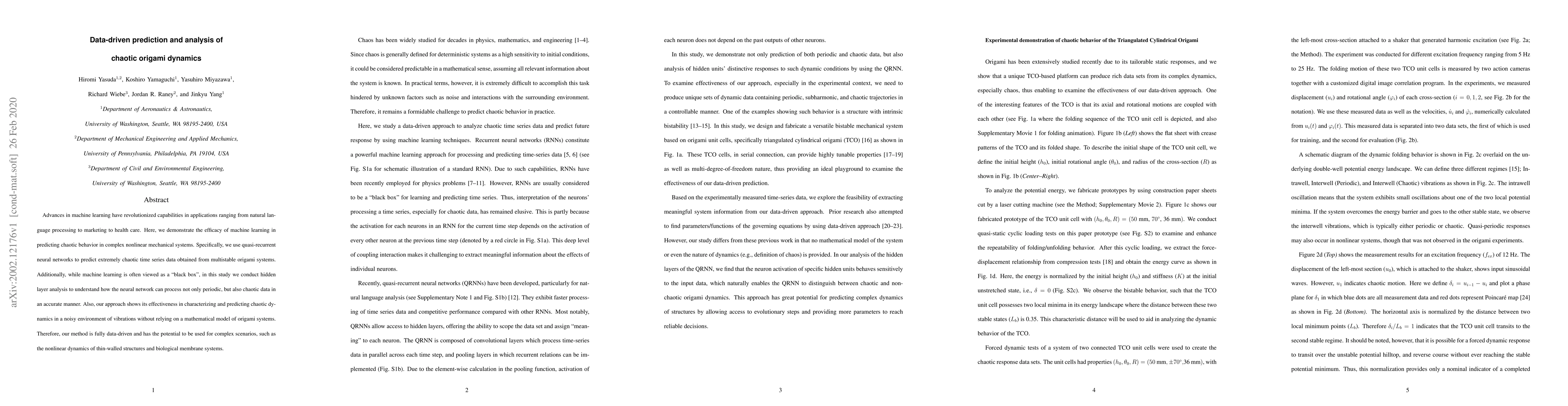 Researchers used machine learning to predict chaotic behavior in origami systems and characterized how neural networks process complex data without relying on mathematical models. Their data-driven approach shows promise for predicting dynamics in other nonlinear mechanical systems.