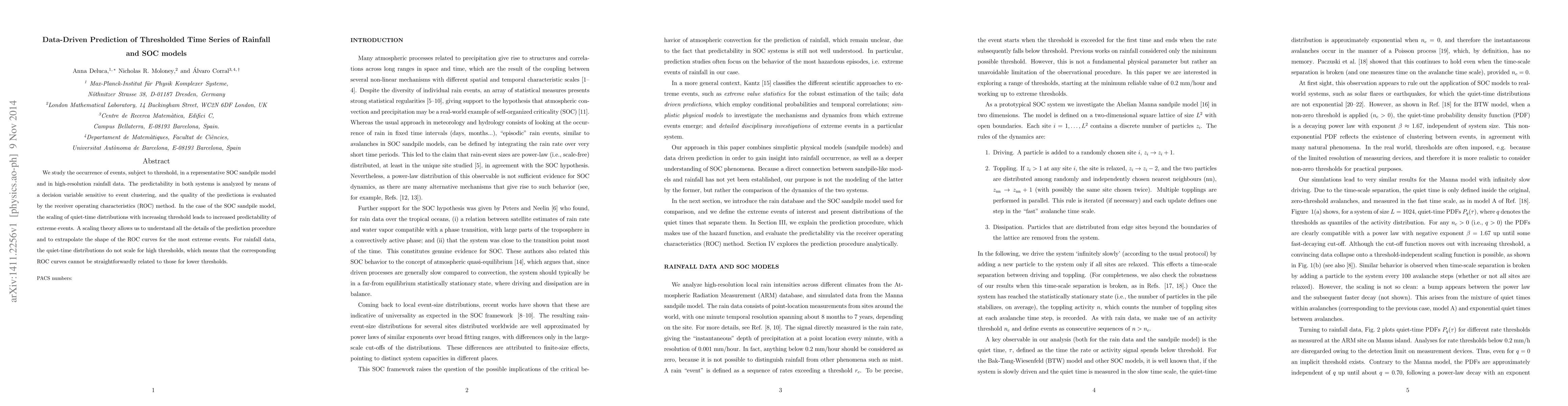 Researchers study predictability of extreme events in a model of sandpiles and high-resolution rainfall data, finding that scaling laws improve prediction for sandpile models but not for rainfall data.