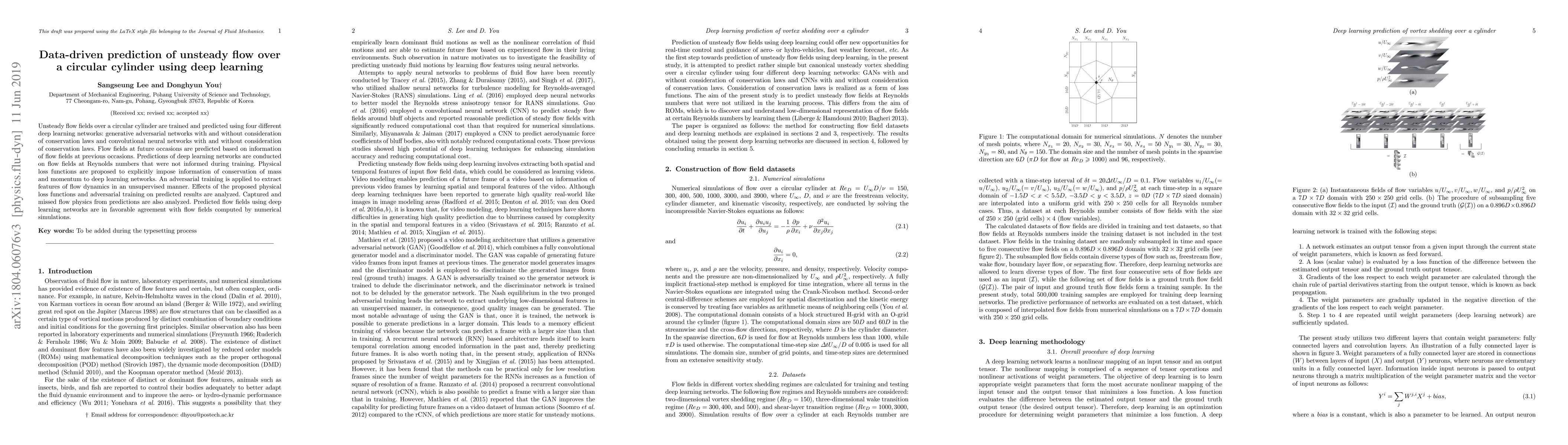 This research employs various deep learning networks to predict unsteady flow fields over a circular cylinder, incorporating physical loss functions to enforce conservation laws and adversarial training for feature extraction. The study finds that these methods enhance prediction accuracy, with results aligning well with numerical simulations.