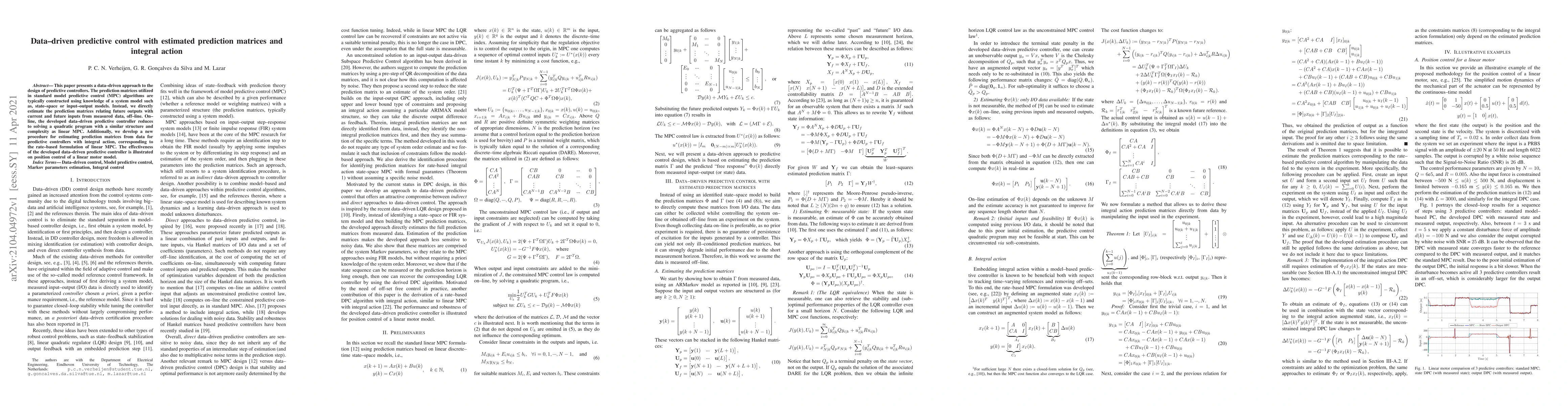 This paper proposes a data-driven predictive controller that estimates prediction matrices from measured data instead of relying on system models. It also introduces a method for incorporating integral action, demonstrating effectiveness in linear motor position control.