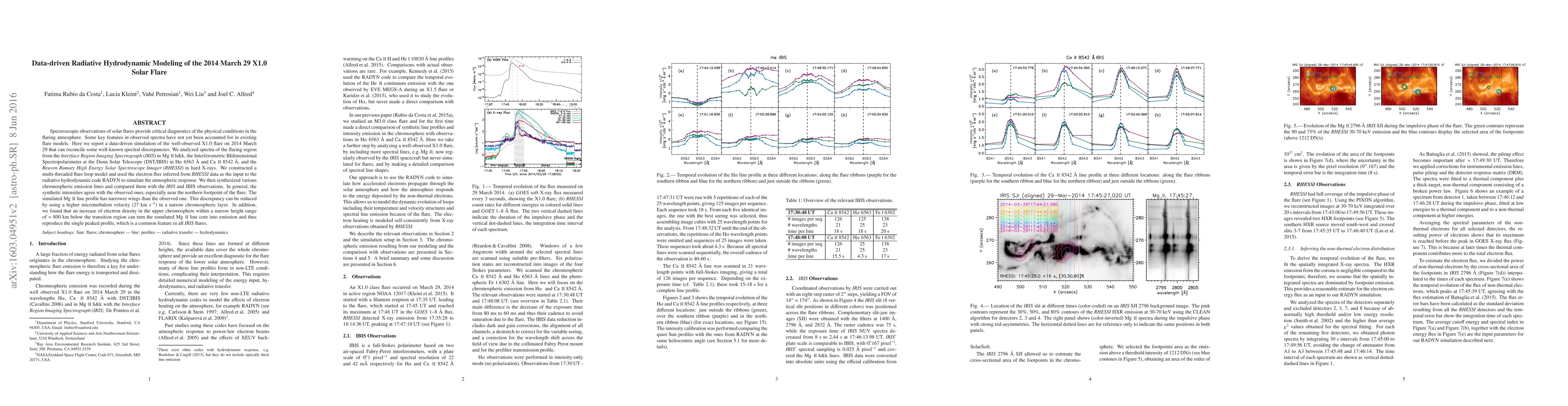 A data-driven model simulates a 2014 solar flare, reconciling some observed spectral discrepancies, and finds that increasing electron density in the upper chromosphere can reproduce single-peaked MgII line profiles.