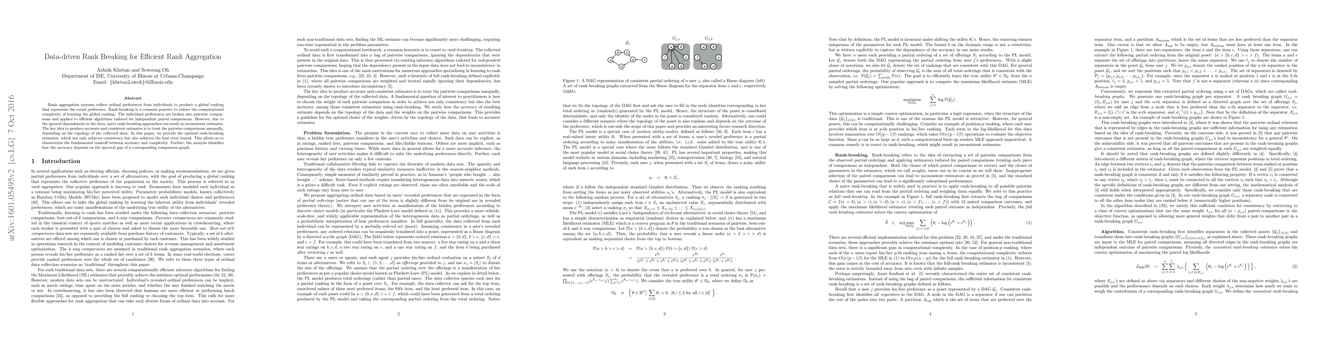 This paper introduces an optimal rank-breaking estimator for efficient rank aggregation that achieves consistency and best error bound, allowing for a fundamental tradeoff between accuracy and complexity to be characterized.