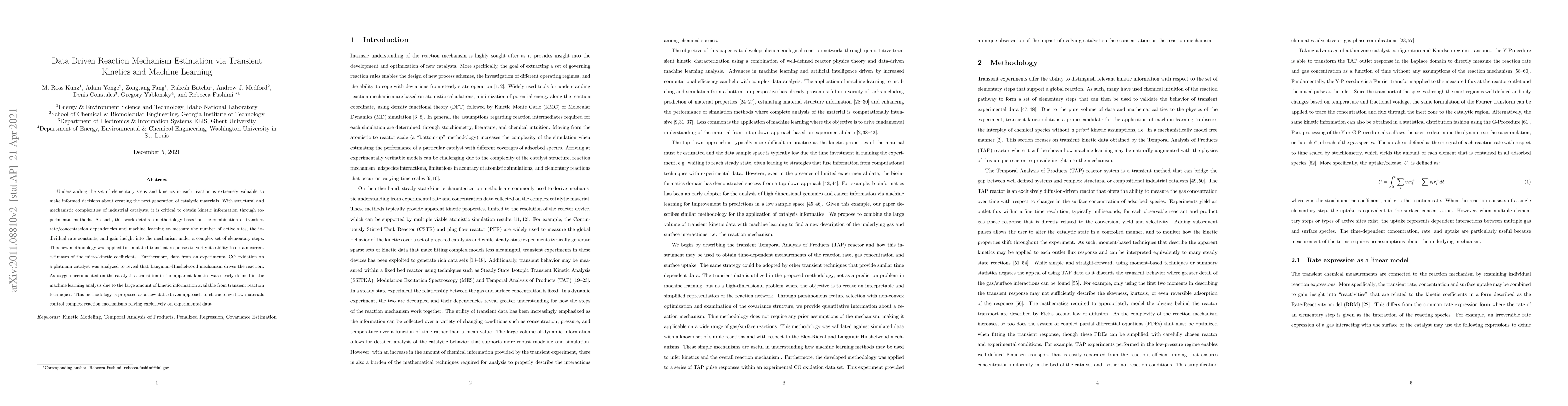 Understanding the set of elementary steps and kinetics in each reaction is extremely valuable to make informed decisions about creating the next generation of catalytic materials. With physical and mechanistic complexity of industrial catalysts, it is critical to obtain kinetic information through experimental methods. As such, this work details a methodology based on the combination of transient rate/concentration dependencies and machine learning to measure the number of active sites, the individual rate constants, and gain insight into the mechanism under a complex set of elementary steps. This new methodology was applied to simulated transient responses to verify its ability to obtain correct estimates of the micro-kinetic coefficients. Furthermore, experimental CO oxidation data was analyzed to reveal the Langmuir-Hinshelwood mechanism driving the reaction. As oxygen accumulated on the catalyst, a transition in the mechanism was clearly defined in the machine learning analysis due to the large amount of kinetic information available from transient reaction techniques. This methodology is proposed as a new data driven approach to characterize how materials control complex reaction mechanisms relying exclusively on experimental data.