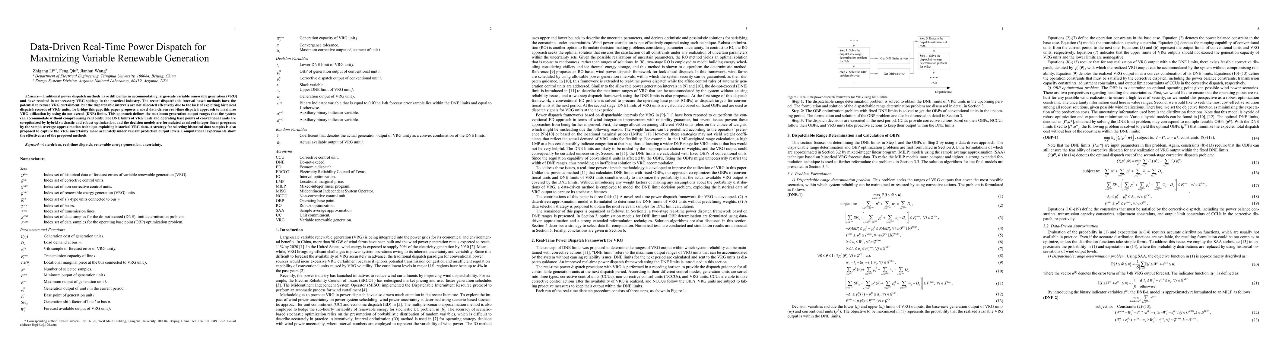 This paper proposes a data-driven real-time power dispatch method to maximize variable renewable generation (VRG) utilization by defining do-not-exceed limits. The approach optimizes VRG and conventional unit outputs using hybrid stochastic and robust optimization, showing effectiveness in reducing VRG spillage through computational experiments.
