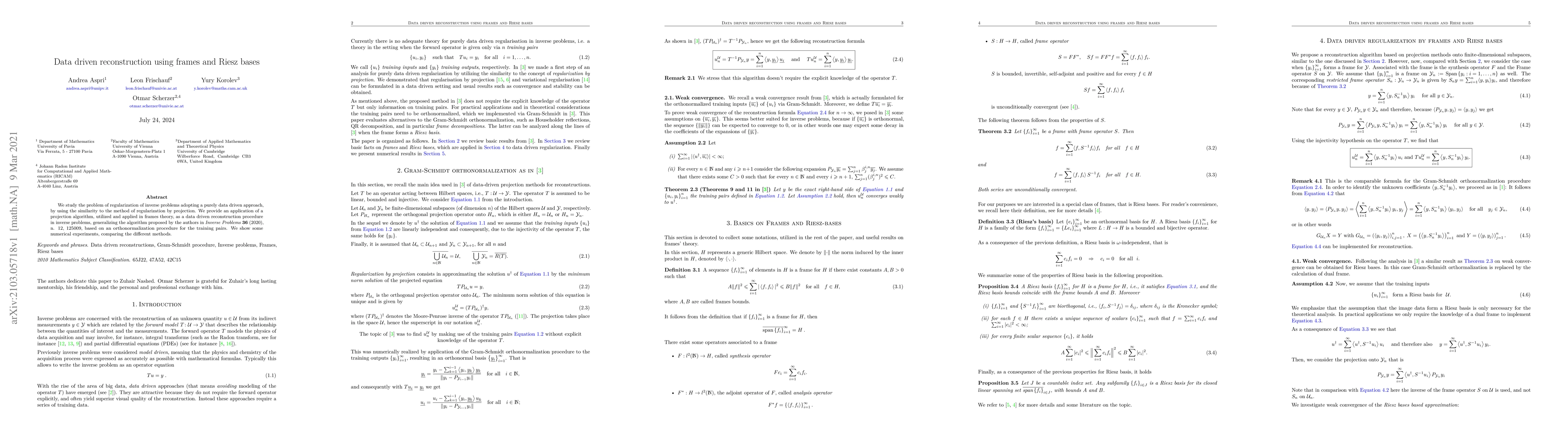 We study the problem of regularization of inverse problems adopting a purely data driven approach, by using the similarity to the method of regularization by projection. We provide an application of a projection algorithm, utilized and applied in frames theory, as a data driven reconstruction procedure in inverse problems, generalizing the algorithm proposed by the authors in Inverse Problems 36 (2020), n. 12, 125009, based on an orthonormalization procedure for the training pairs. We show some numerical experiments, comparing the different methods.