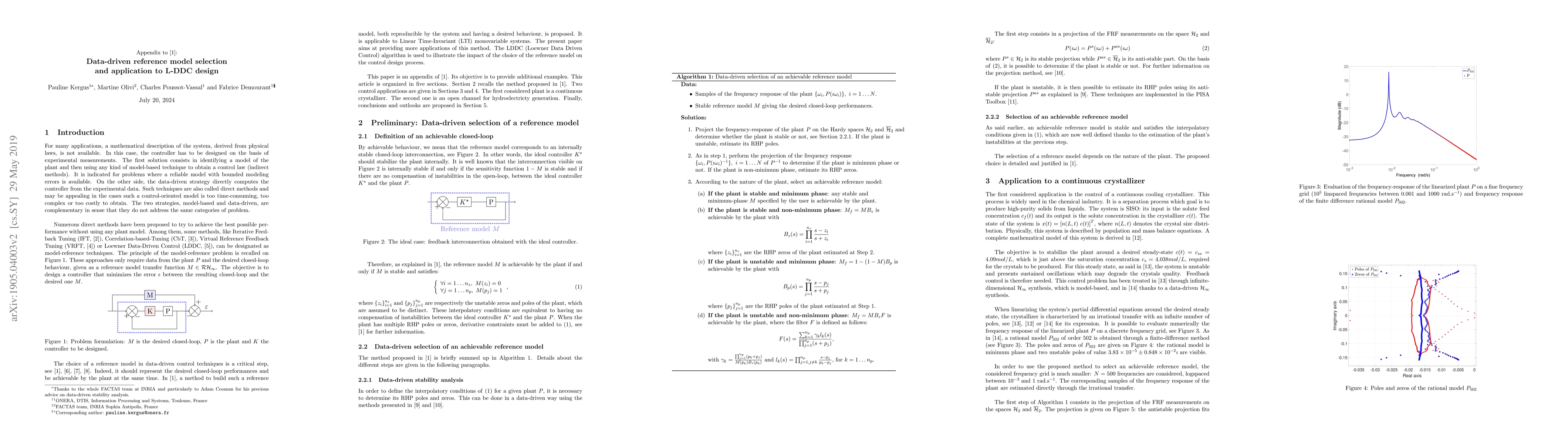 The choice of a reference model in data-driven control techniques is a critical step. Indeed, it should represent the desired closed-loop performances and be achievable by the plant at the same time. In this paper, we propose a method to build such a reference model, both reproducible by the system and having a desired behaviour. It is applicable to Linear Time-Invariant (LTI) monovariable systems and relies on the estimation of the plant's instabilities through a data-driven stability analysis technique. The L-DDC (Loewner Data Driven Control) algorithm is used to illustrate the impact of the choice of the reference model on the control design process. Finally, the proposed choice of specifications allows to use a controller validation technique based on the small-gain theorem.