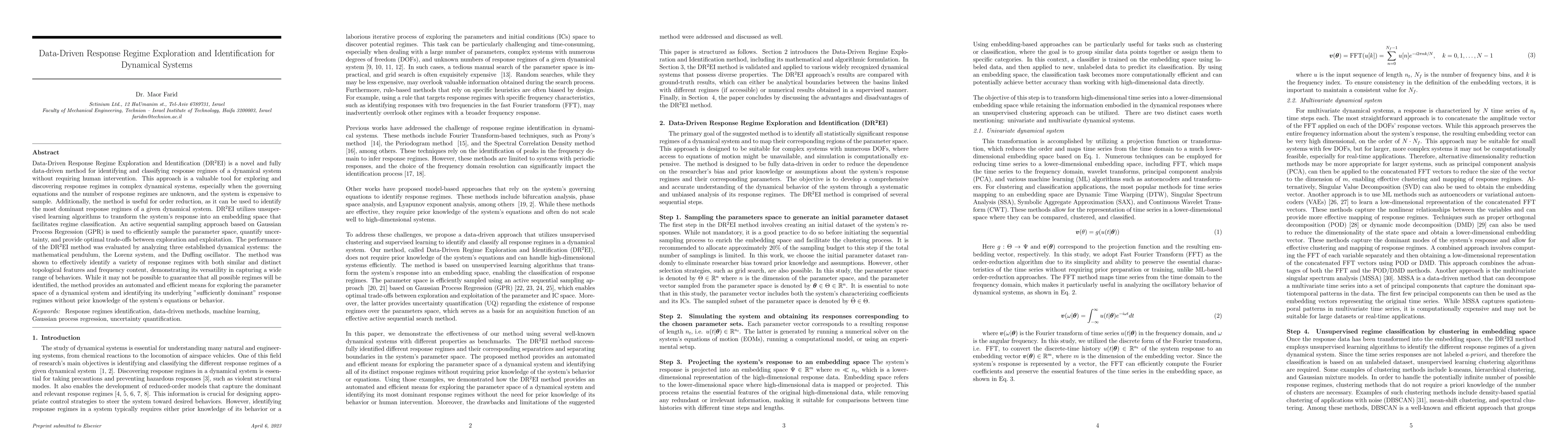 The DR$^2$EI method is a data-driven technique for identifying and classifying response regimes in dynamical systems without prior knowledge of the system's equations. It employs unsupervised learning and active sampling to efficiently explore and classify complex system behaviors.