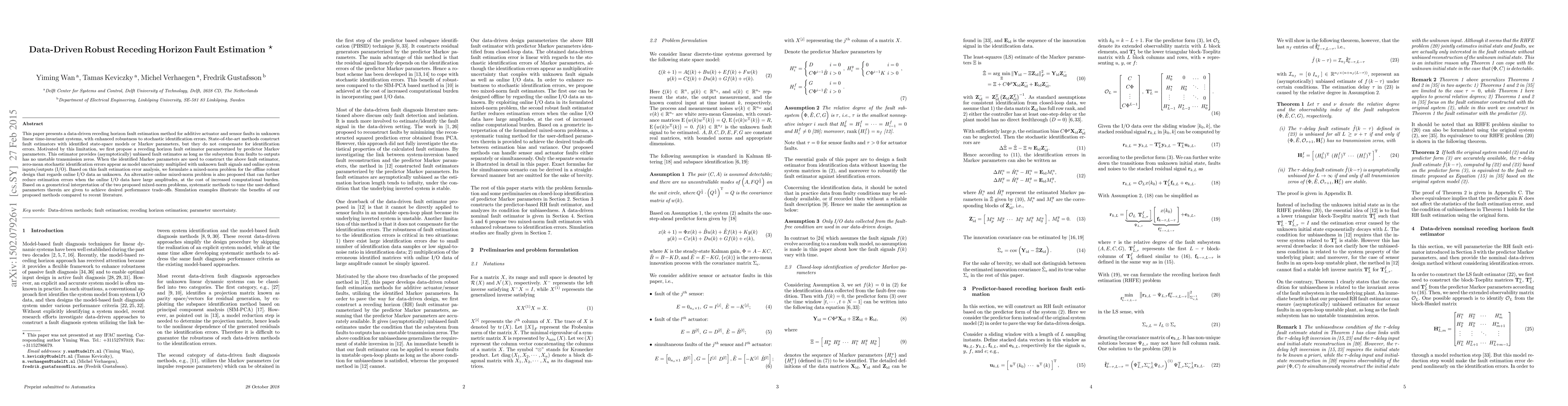 This paper introduces a data-driven receding horizon fault estimation method for actuator and sensor faults in unknown linear time-invariant systems, enhancing robustness against stochastic identification errors. The proposed method formulates a mixed-norm problem for robust design, offering improved fault estimation accuracy and performance trade-offs.