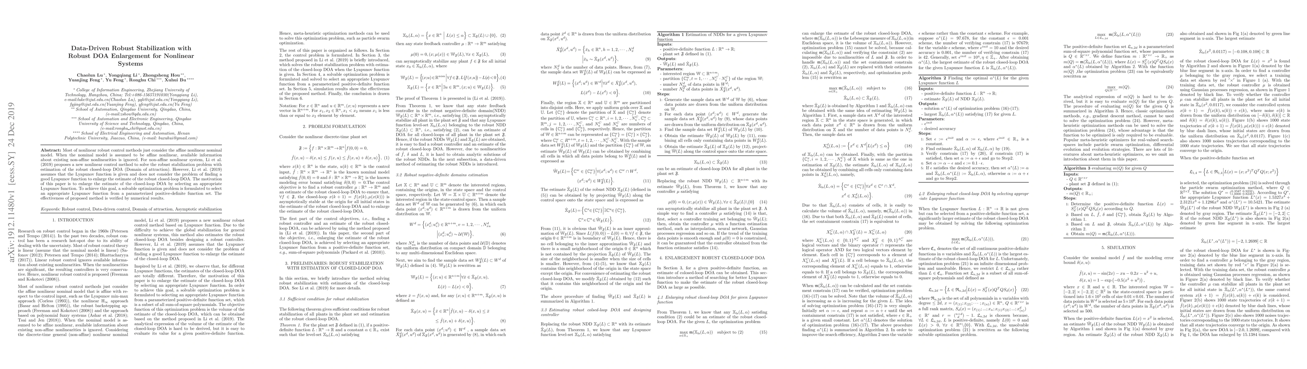 Most of nonlinear robust control methods just consider the affine nonlinear nominal model. When the nominal model is assumed to be affine nonlinear, available information about existing non-affine nonlinearities is ignored. For non-affine nonlinear system, Li et al. (2019) proposes a new nonlinear control method to solve the robust stabilization problem with estimation of the robust closed-loop DOA (Domain of attraction). However, Li et al. (2019) assumes that the Lyapunov function is given and does not consider the problem of finding a good Lyapunov function to enlarge the estimate of the robust closed-loop DOA. The motivation of this paper is to enlarge the estimate of the closed-loop DOA by selecting an appropriate Lyapunov function. To achieve this goal, a solvable optimization problem is formulated to select an appropriate Lyapunov function from a parameterized positive-definite function set. The effectiveness of proposed method is verified by numerical results.
