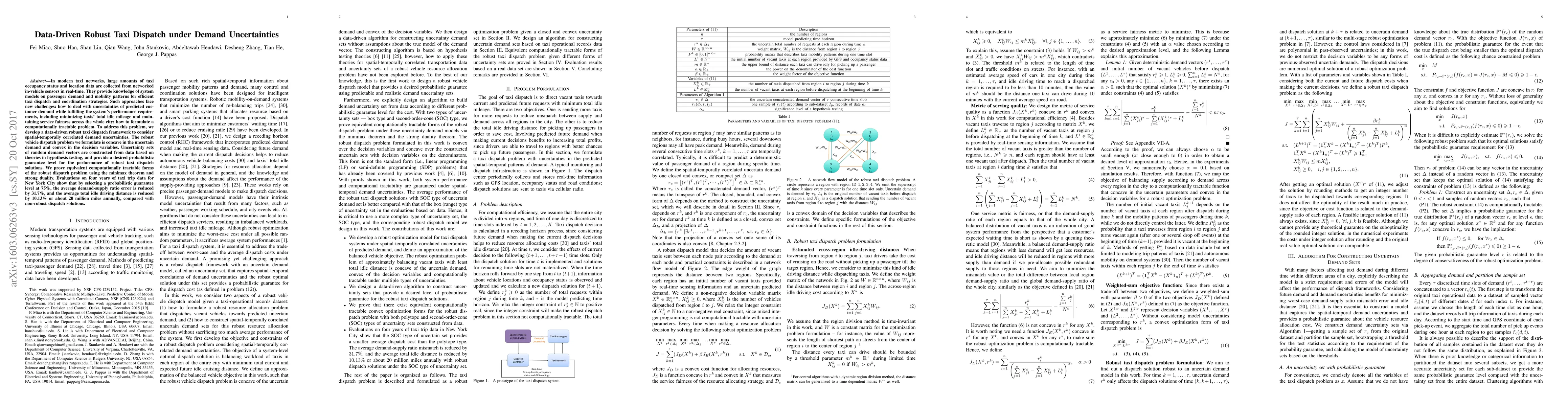 The paper introduces a computationally tractable robust optimization framework for taxi dispatch that models demand uncertainties using data-driven approaches and provides probabilistic guarantees for solution performance.