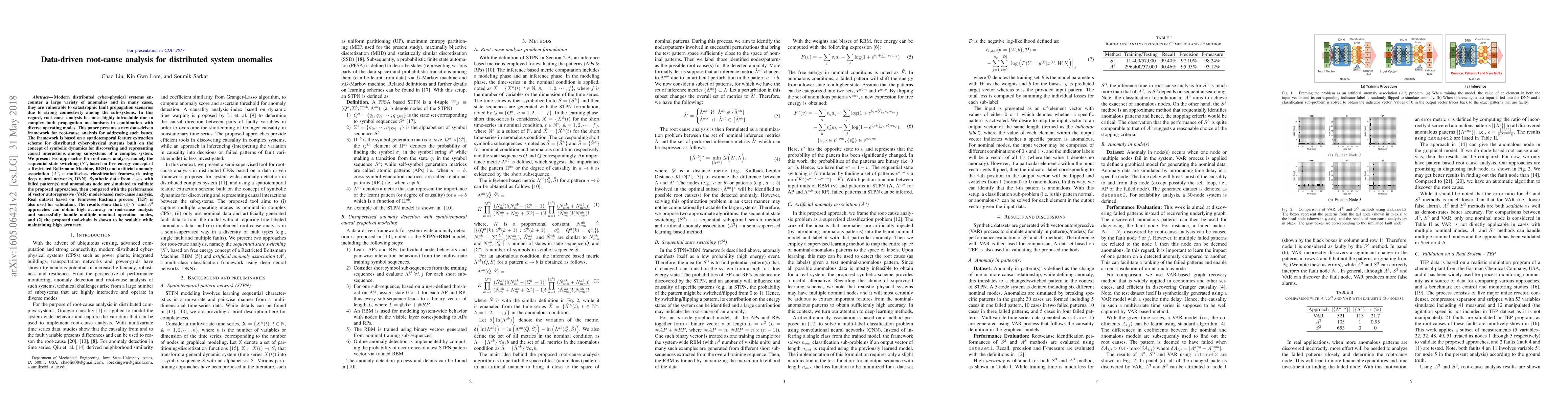 This paper introduces a data-driven framework for root-cause analysis in distributed cyber-physical systems, employing symbolic dynamics and two approaches: $S^3$ and $A^3$. The framework demonstrates high accuracy and scalability in identifying anomalies across various operational modes, validated through synthetic and real datasets.