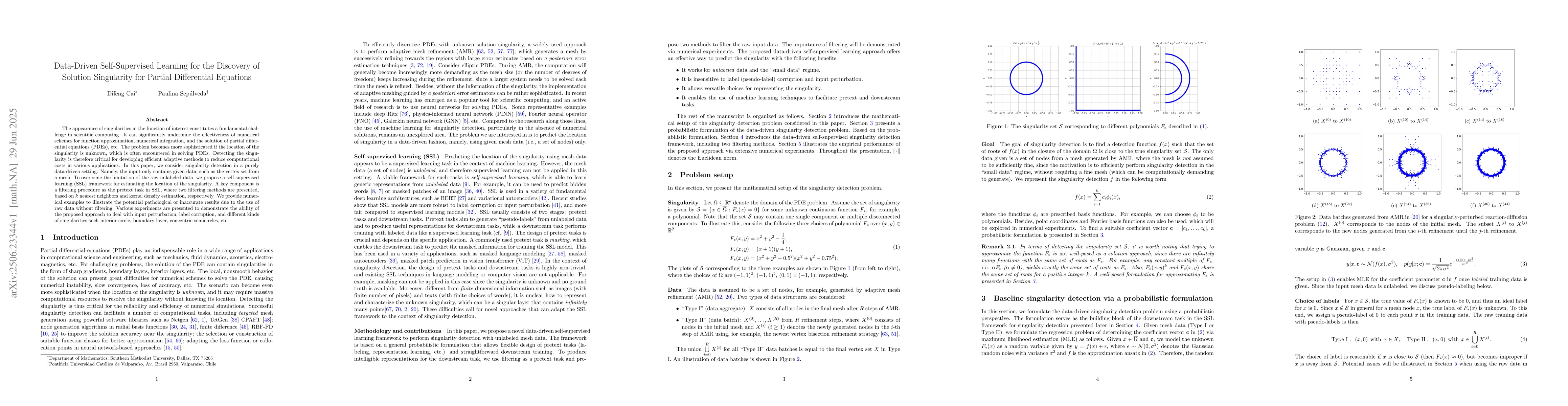 The appearance of singularities in the function of interest constitutes a fundamental challenge in scientific computing. It can significantly undermine the effectiveness of numerical schemes for function approximation, numerical integration, and the solution of partial differential equations (PDEs), etc. The problem becomes more sophisticated if the location of the singularity is unknown, which is often encountered in solving PDEs. Detecting the singularity is therefore critical for developing efficient adaptive methods to reduce computational costs in various applications. In this paper, we consider singularity detection in a purely data-driven setting. Namely, the input only contains given data, such as the vertex set from a mesh. To overcome the limitation of the raw unlabeled data, we propose a self-supervised learning (SSL) framework for estimating the location of the singularity. A key component is a filtering procedure as the pretext task in SSL, where two filtering methods are presented, based on $k$ nearest neighbors and kernel density estimation, respectively. We provide numerical examples to illustrate the potential pathological or inaccurate results due to the use of raw data without filtering. Various experiments are presented to demonstrate the ability of the proposed approach to deal with input perturbation, label corruption, and different kinds of singularities such interior circle, boundary layer, concentric semicircles, etc.