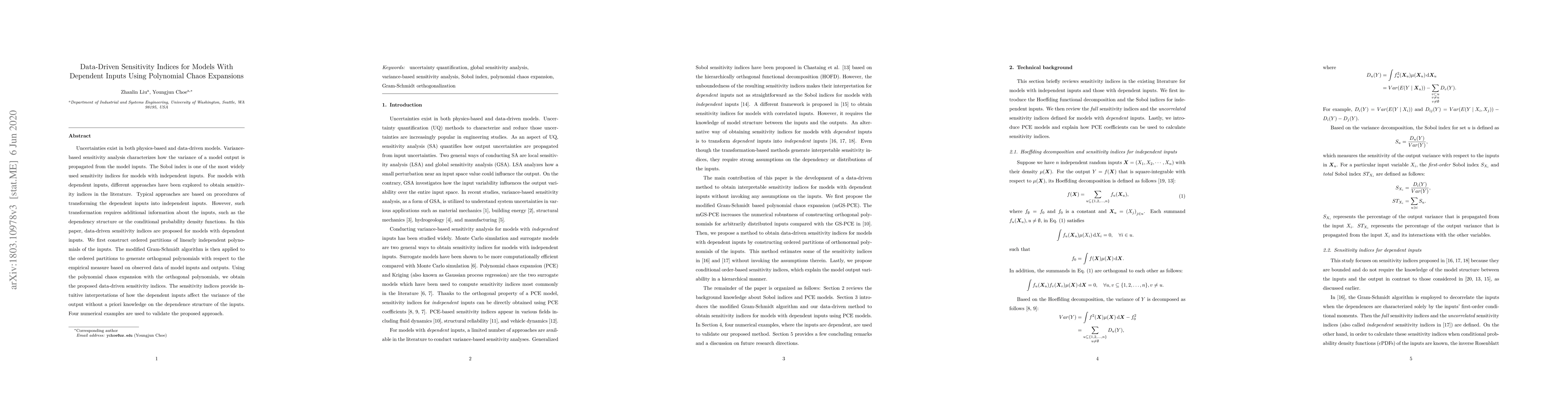 This paper proposes data-driven sensitivity indices for models with dependent inputs using polynomial chaos expansion. It constructs orthogonal polynomials from empirical data to assess input variance effects without requiring prior knowledge of input dependency structure.