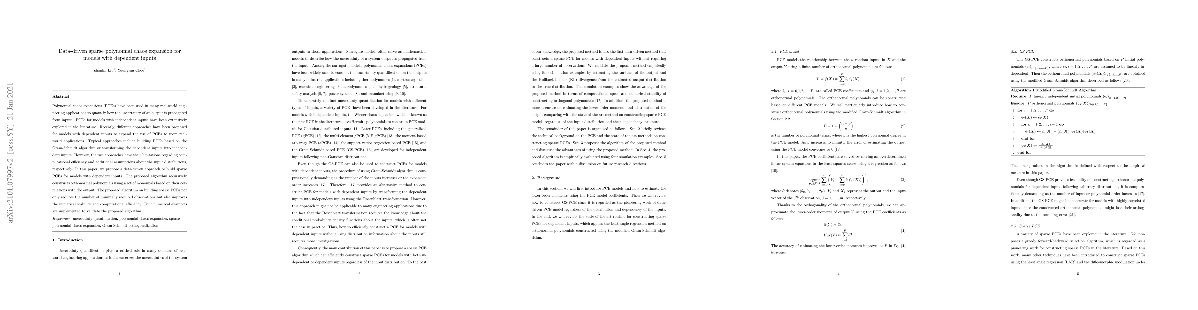 A new data-driven approach to building sparse polynomial chaos expansions for models with dependent inputs is proposed, improving computational efficiency and reducing the need for assumptions about input distributions.
