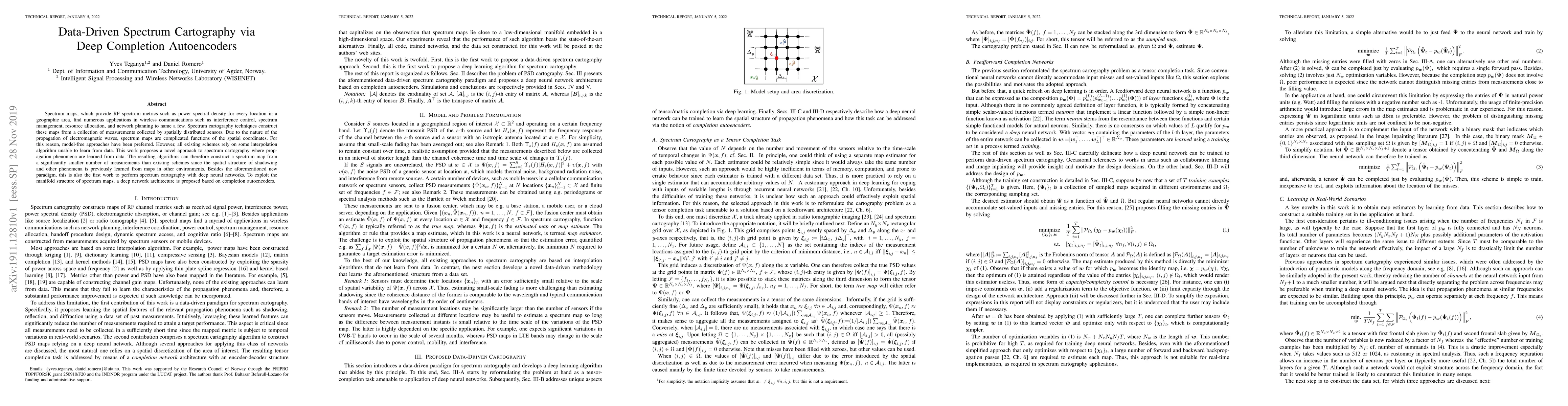 Spectrum maps, which provide RF spectrum metrics such as power spectral density for every location in a geographic area, find numerous applications in wireless communications such as interference control, spectrum management, resource allocation, and network planning to name a few. Spectrum cartography techniques construct these maps from a collection of measurements collected by spatially distributed sensors. Due to the nature of the propagation of electromagnetic waves, spectrum maps are complicated functions of the spatial coordinates. For this reason, model-free approaches have been preferred. However, all existing schemes rely on some interpolation algorithm unable to learn from data. This work proposes a novel approach to spectrum cartography where propagation phenomena are learned from data. The resulting algorithms can therefore construct a spectrum map from a significantly smaller number of measurements than existing schemes since the spatial structure of shadowing and other phenomena is previously learned from maps in other environments. Besides the aforementioned new paradigm, this is also the first work to perform spectrum cartography with deep neural networks. To exploit the manifold structure of spectrum maps, a deep network architecture is proposed based on completion autoencoders.