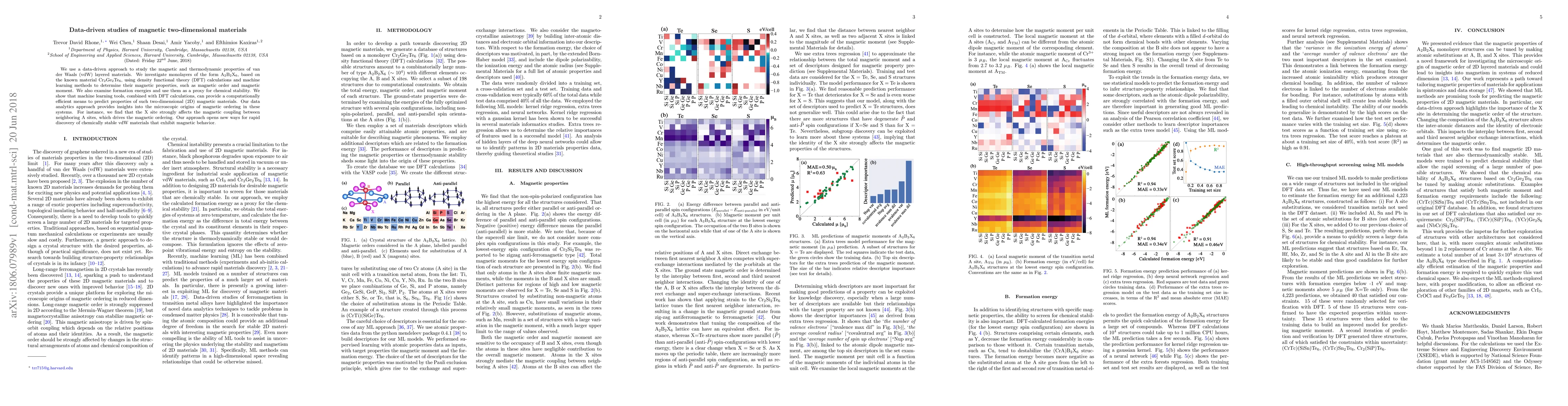 This paper employs data-driven techniques, combining density functional theory and machine learning, to predict magnetic properties in van der Waals layered materials of the form A$_2$B$_2$X$_6$. It reveals that the X site significantly influences magnetic coupling, offering a new method for discovering stable 2D magnetic materials.