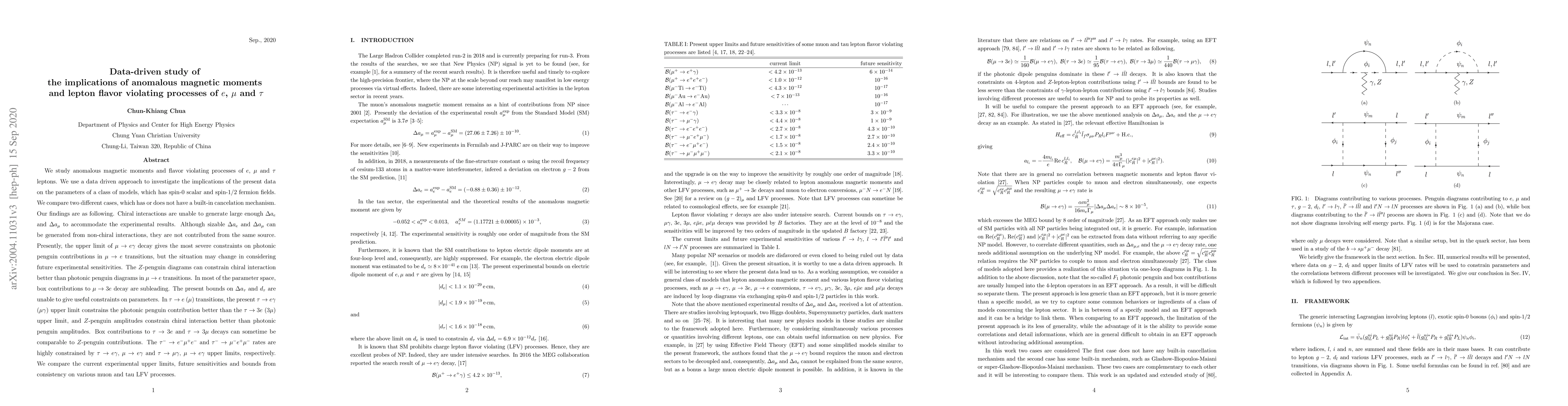 Researchers study anomalous magnetic moments and lepton flavor violating processes in a data-driven approach, finding that certain interactions can generate large enough effects to accommodate experimental results, while others are constrained by current and future experimental sensitivities.