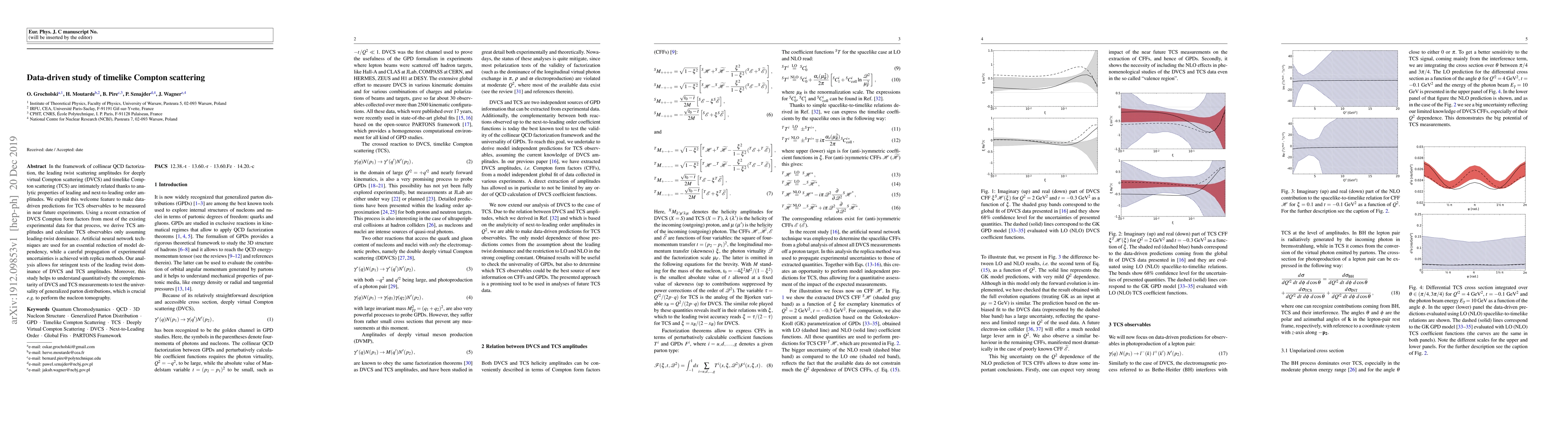 This paper uses collinear QCD factorization and artificial neural networks to predict timelike Compton scattering observables, leveraging the relationship between deeply virtual Compton scattering and timelike Compton scattering. The study aims to test leading twist dominance and understand the complementary roles of these scattering processes in probing generalized parton distributions.