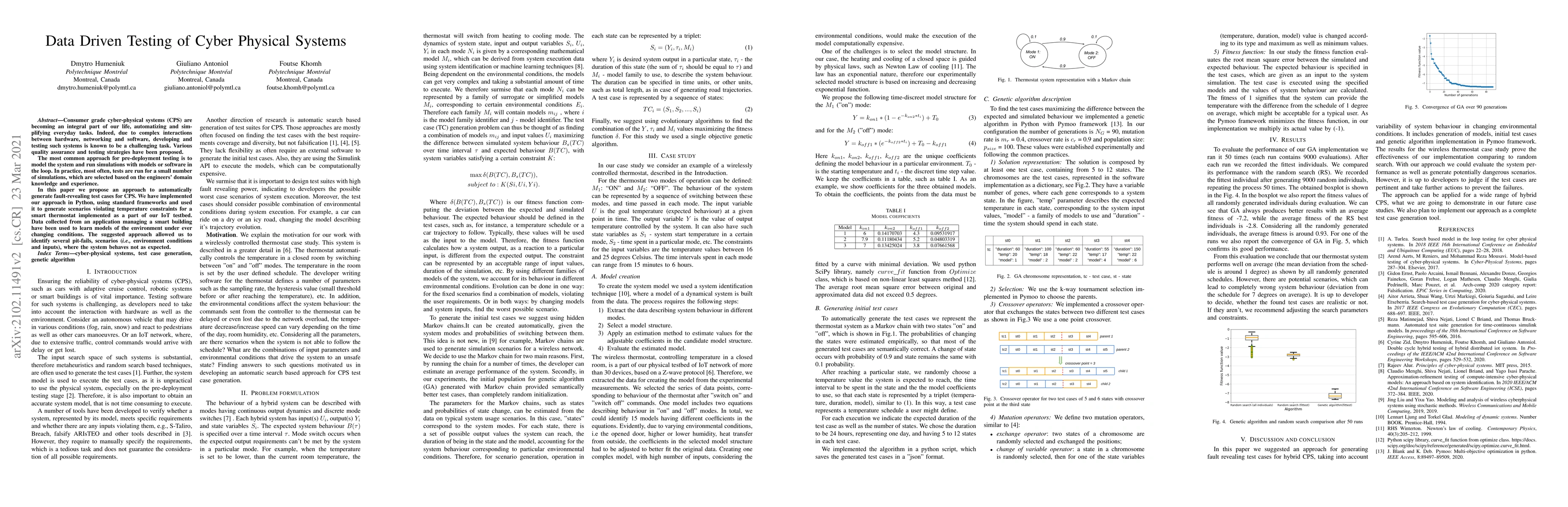 This paper proposes an automated method for generating fault-revealing test cases for cyber-physical systems (CPS) using data-driven approaches. The authors implemented this approach in Python and successfully identified unexpected behaviors in a smart thermostat within an IoT testbed by learning from environmental data.