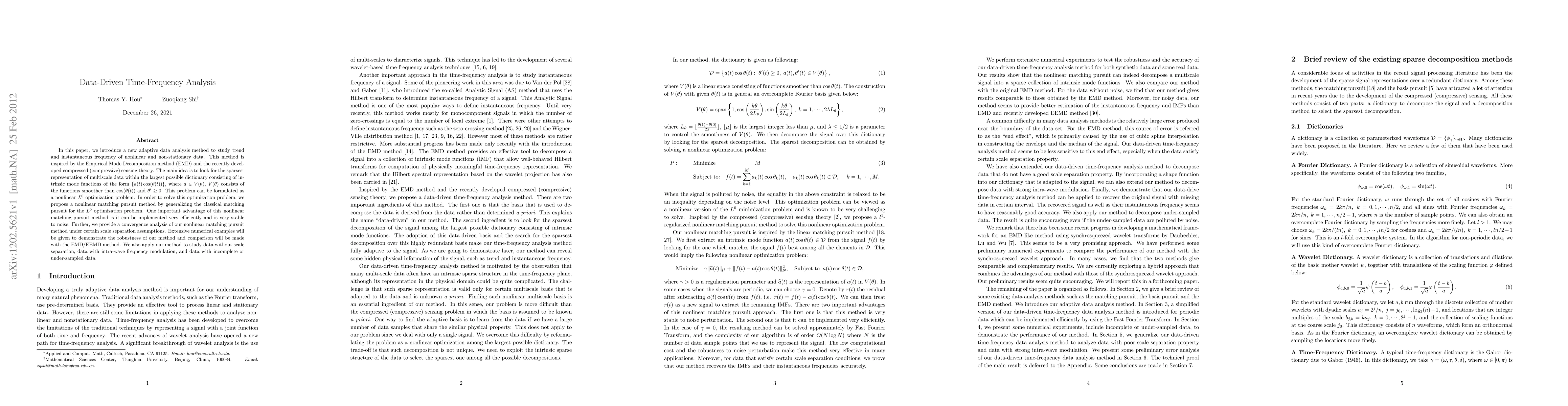 A new adaptive data analysis method is introduced to study nonlinear and non-stationary data, using a sparse representation of multiscale data and a nonlinear matching pursuit algorithm for efficient and stable optimization.