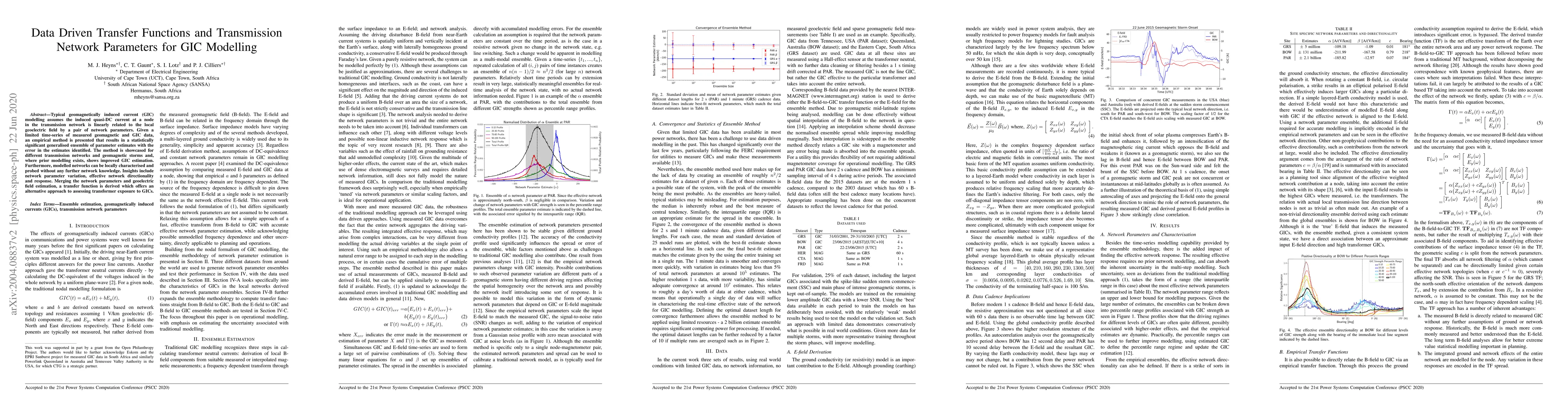 Typical geomagnetically induced current (GIC) modelling assumes the induced quasi-DC current at a node in the transmission network is linearly related to the local geoelectric field by a pair of network parameters. Given a limited time-series of measured geomagnetic and GIC data, an empirical method is presented that results in a statistically significant generalised ensemble of parameter estimates with the error in the estimates identified. The method is showcased for different transmission networks and geomagnetic storms and, where prior modelling exists, shows improved GIC estimation. Furthermore, modelled networks can be locally characterised and probed without any further network knowledge. Insights include network parameter variation, effective network directionality and response. Merging the network parameters and geoelectric field estimation, a transfer function is derived which offers an alternative approach to assessing transformer exposure to GICs.