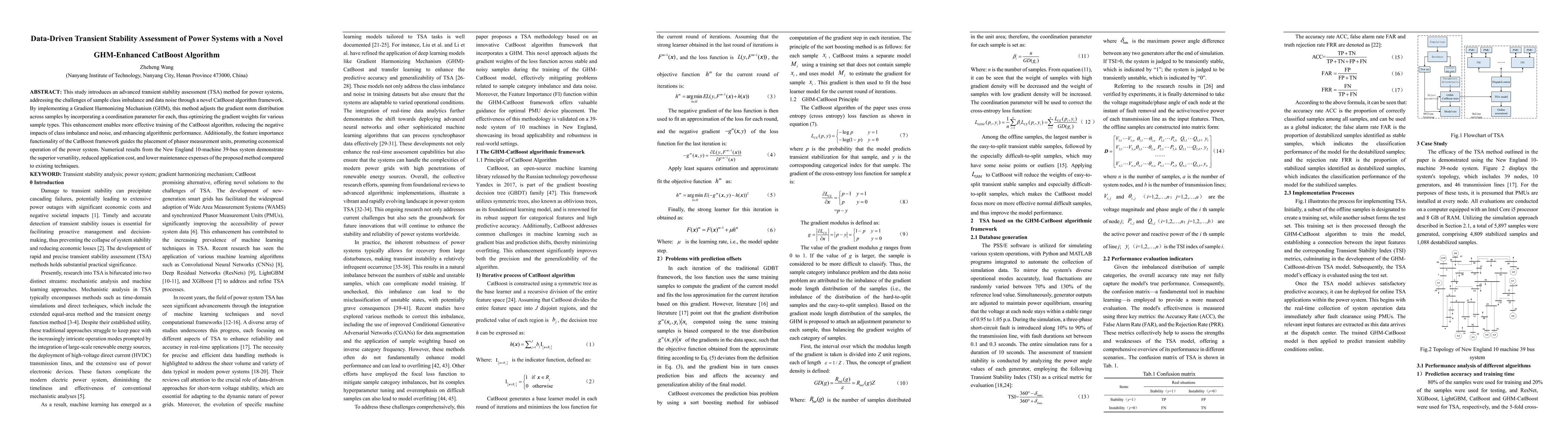 This study presents a novel transient stability assessment method using an enhanced CatBoost algorithm with a Gradient Harmonizing Mechanism (GHM) to tackle class imbalance and data noise, improving CatBoost's training and feature importance for economical power system operation. Results show superior performance and lower costs compared to existing techniques.