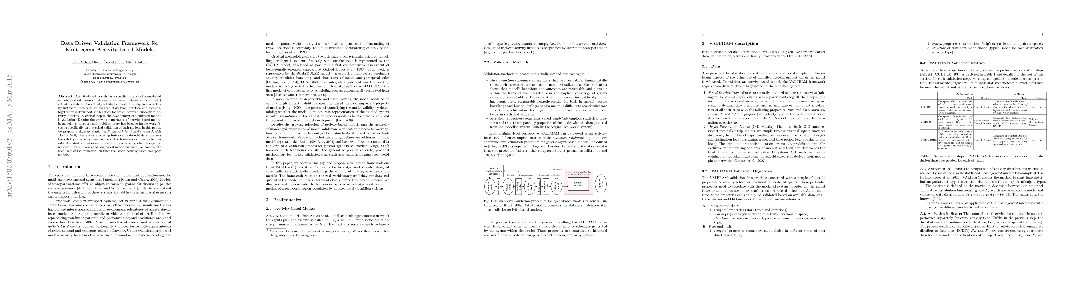 The framework compares temporal and spatial properties of activity schedules against real-world travel diaries and origin-destination matrices.