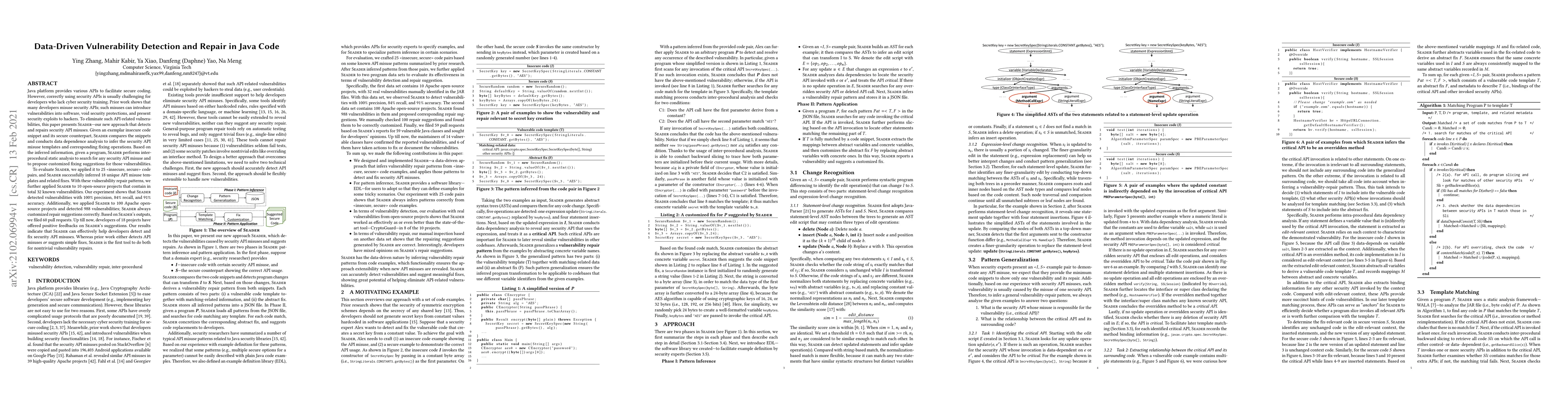 SEADER is a novel approach for detecting and repairing security API misuses in Java code by comparing insecure and secure code snippets to infer misuse templates and corresponding fixes. Evaluations on code pairs and open-source projects show SEADER's high precision, recall, and accuracy in vulnerability detection and effective customization of repair suggestions.