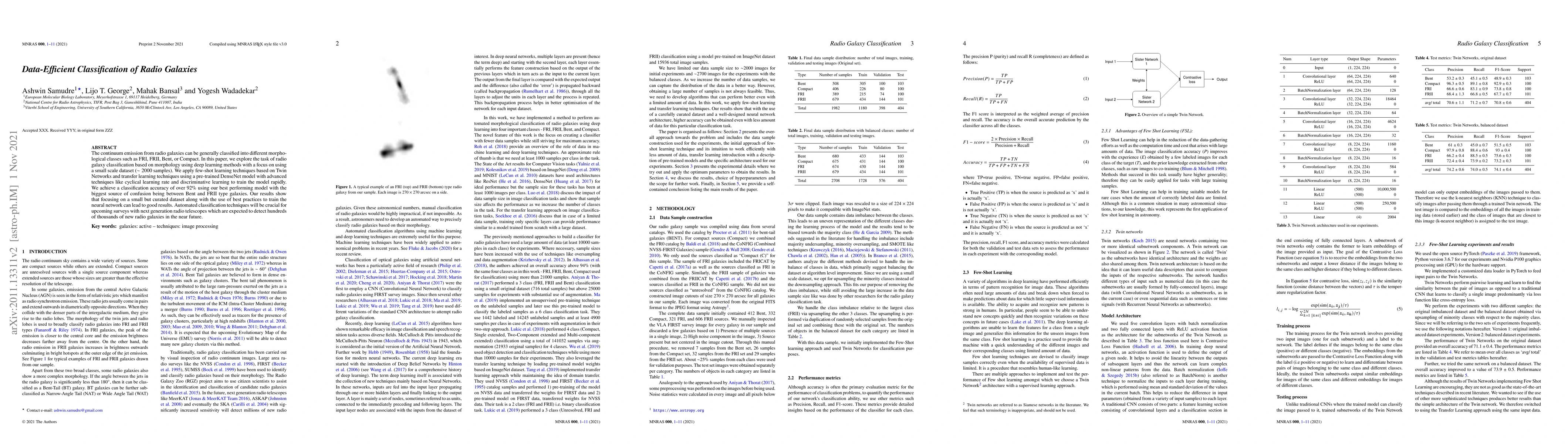 This paper presents a deep learning approach for classifying radio galaxies into morphological classes using a small dataset, achieving over 92% accuracy with few-shot learning and transfer learning techniques. The main challenge lies in distinguishing between Bent and FRII types, highlighting the potential of automated classification for future large-scale radio galaxy surveys.