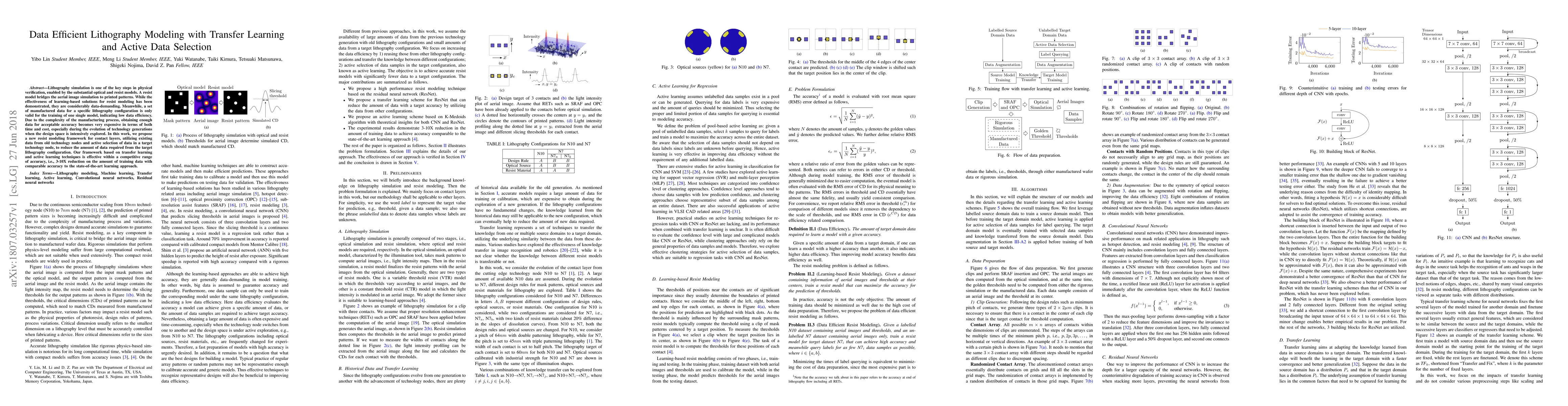 A new resist modeling framework uses transfer learning and active data selection to reduce training data requirements for lithography simulation, achieving 3-10X reductions with comparable accuracy.