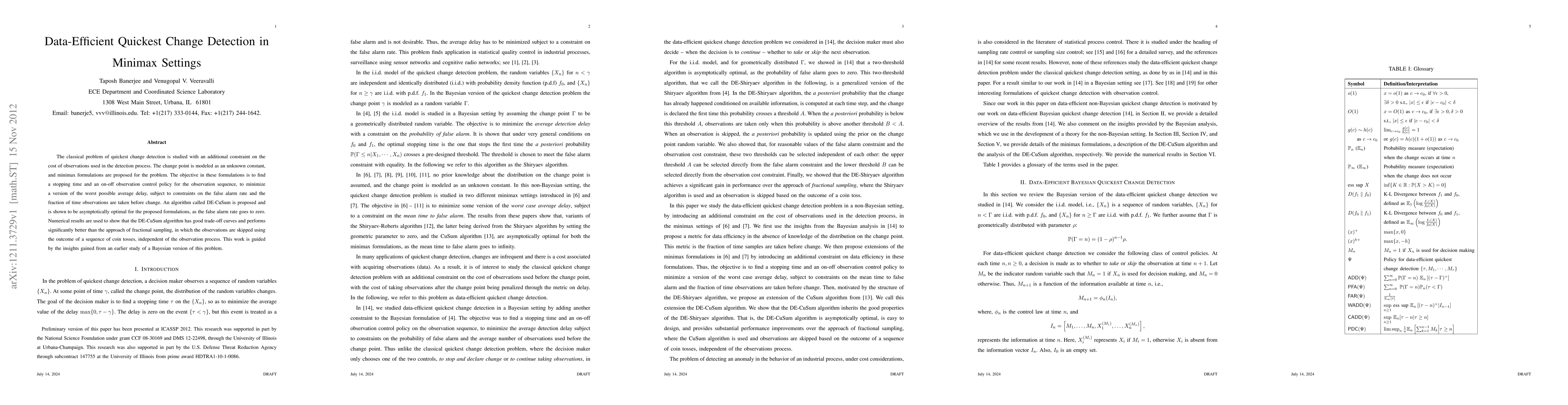 This paper proposes minimax formulations for quickest change detection under observation cost constraints, introducing the DE-CuSum algorithm which is shown to be asymptotically optimal. Numerical results demonstrate that DE-CuSum outperforms fractional sampling, highlighting its effectiveness in balancing detection delay and observation costs.