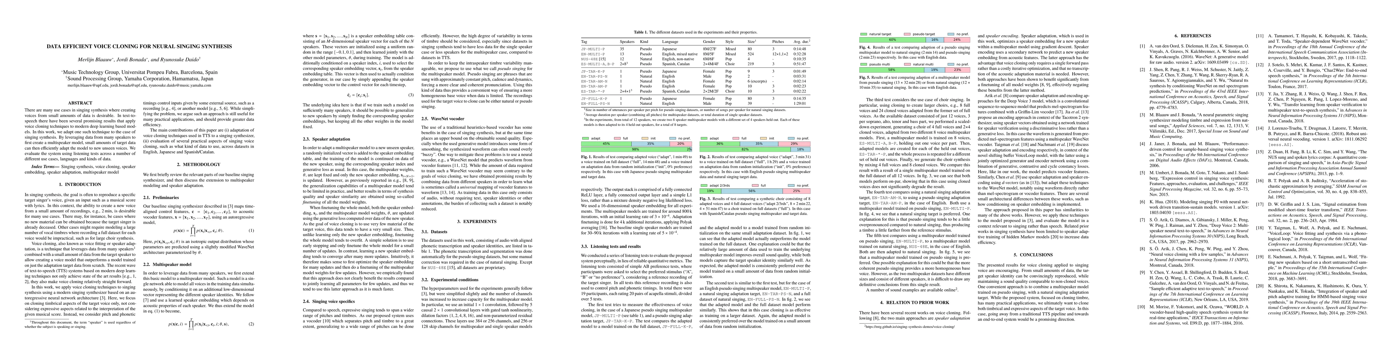 This paper presents a method for data-efficient voice cloning to synthesize singing using small datasets by first creating a multispeaker model, which can then adapt to new voices with minimal data. The effectiveness is evaluated through listening tests across various use cases, languages, and data types.