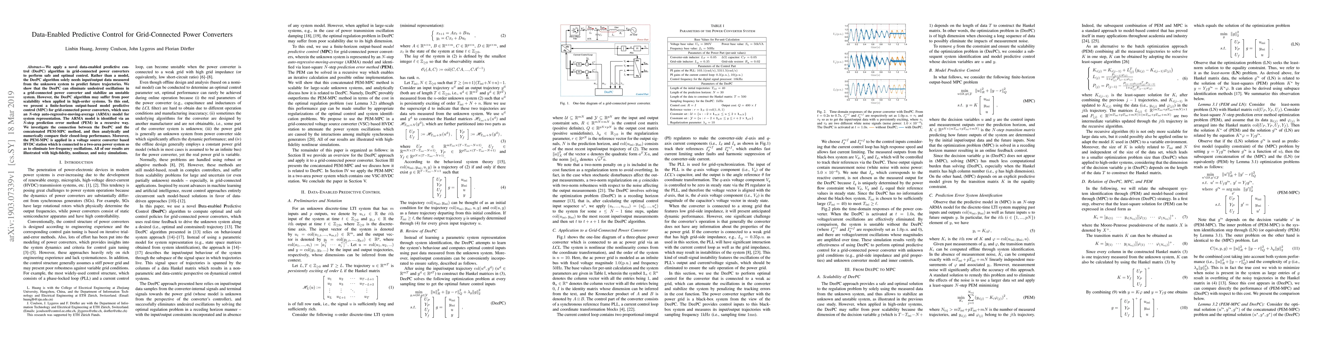 This paper introduces a data-enabled predictive control (DeePC) algorithm for grid-connected power converters, demonstrating its ability to eliminate oscillations and stabilize unstable systems. It also presents a scalable finite-horizon output-based model predictive control (MPC) method using an N-step auto-regressive-moving-average model to address scalability issues, and compares both methods through simulations in a HVDC station.